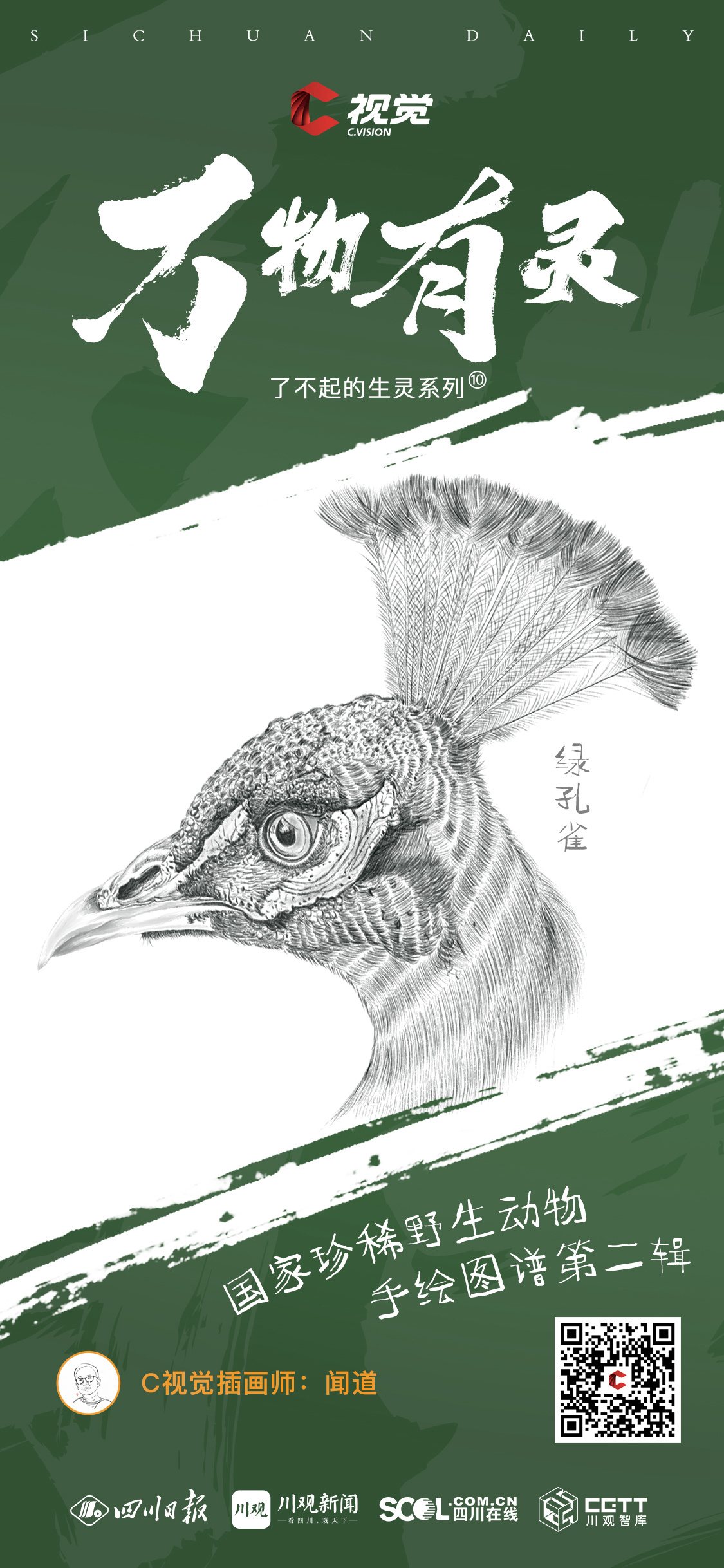 C视觉插画师闻道以精湛的绘画技艺和对生灵的热爱,将动物们的形态、神态和生态特征栩栩如生地呈现在画纸上。