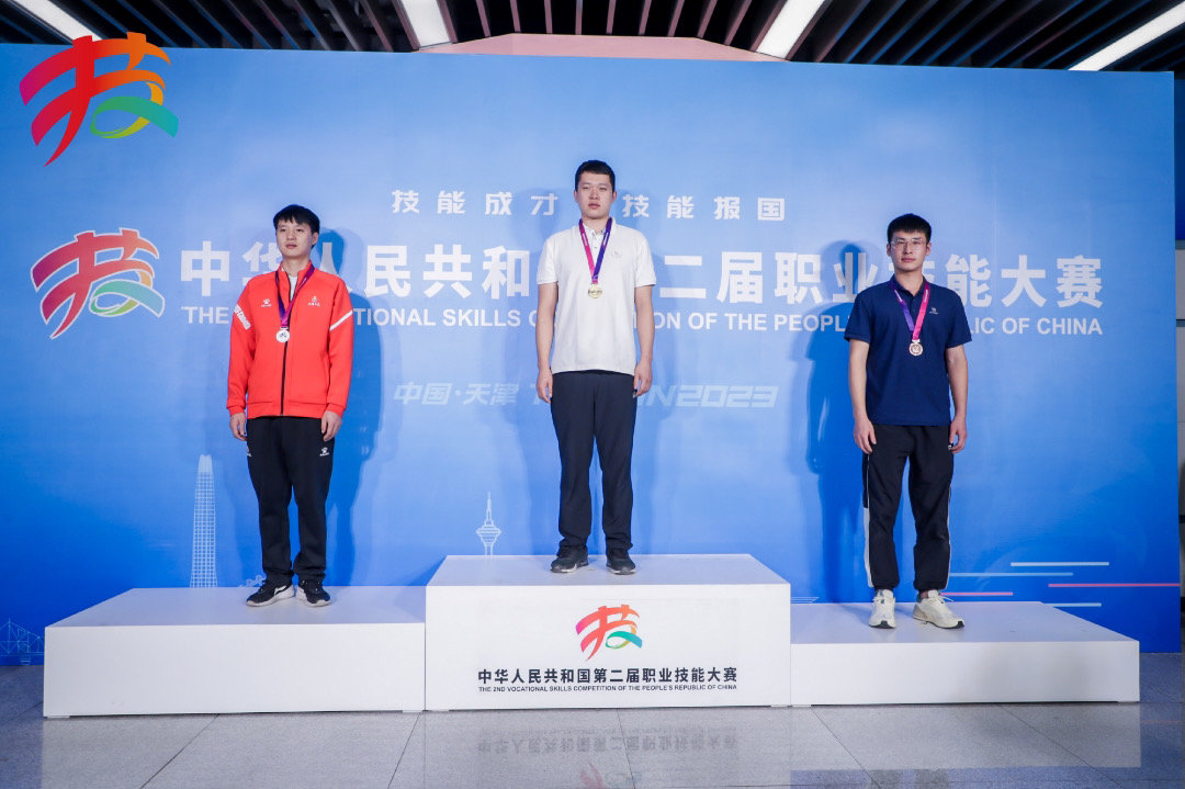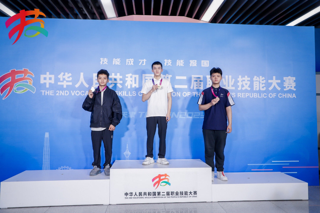 王浩(左二)站在领奖台上。(攀枝花技师学院供图)