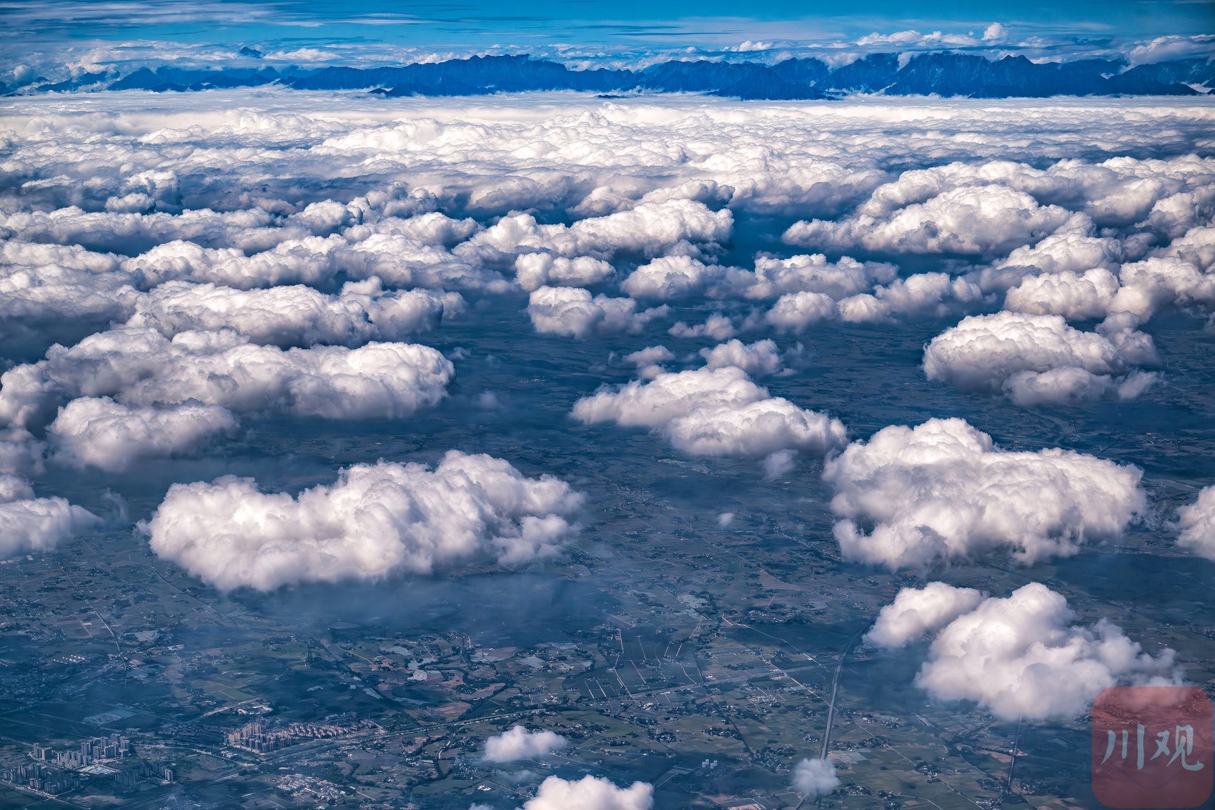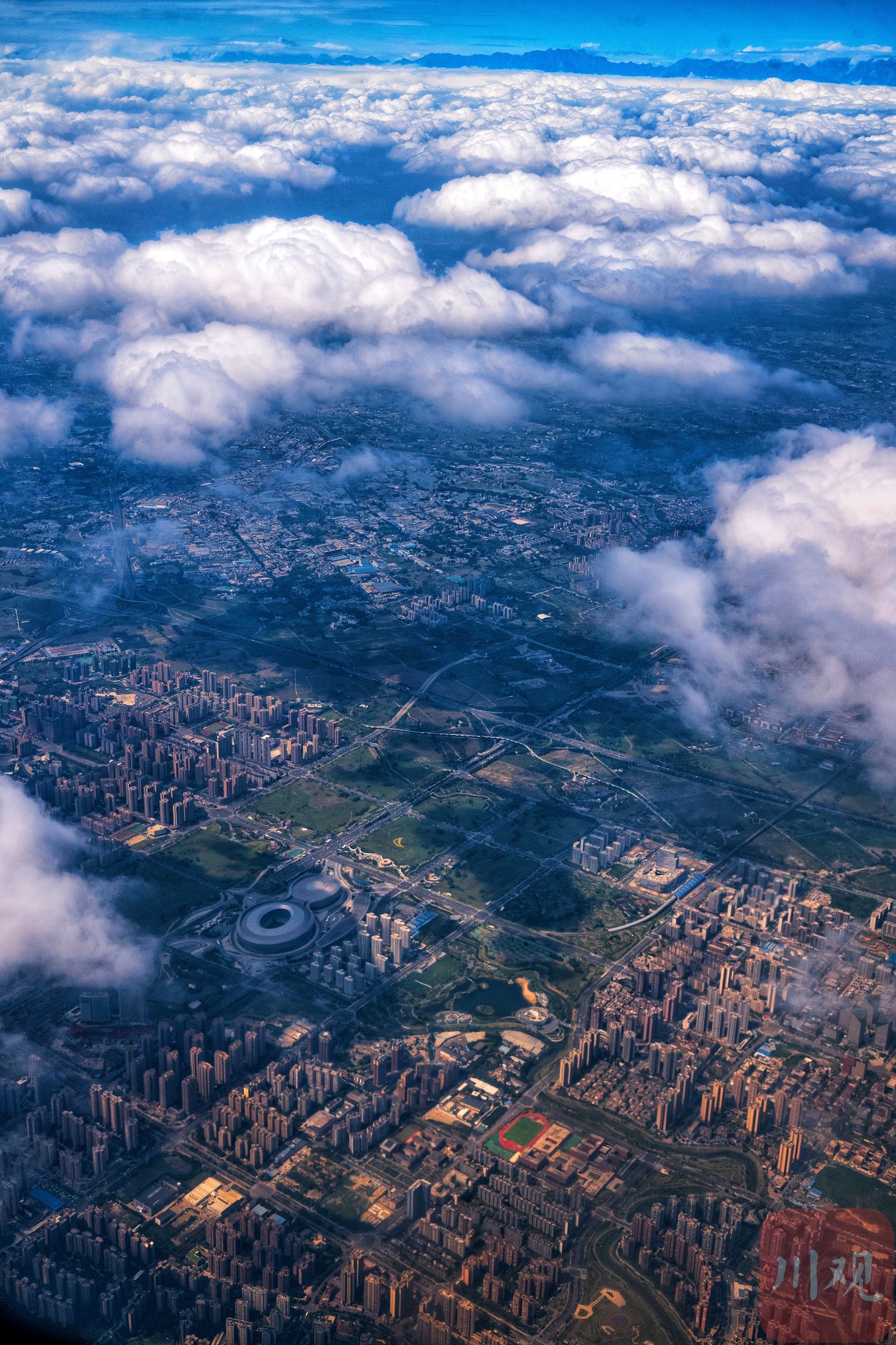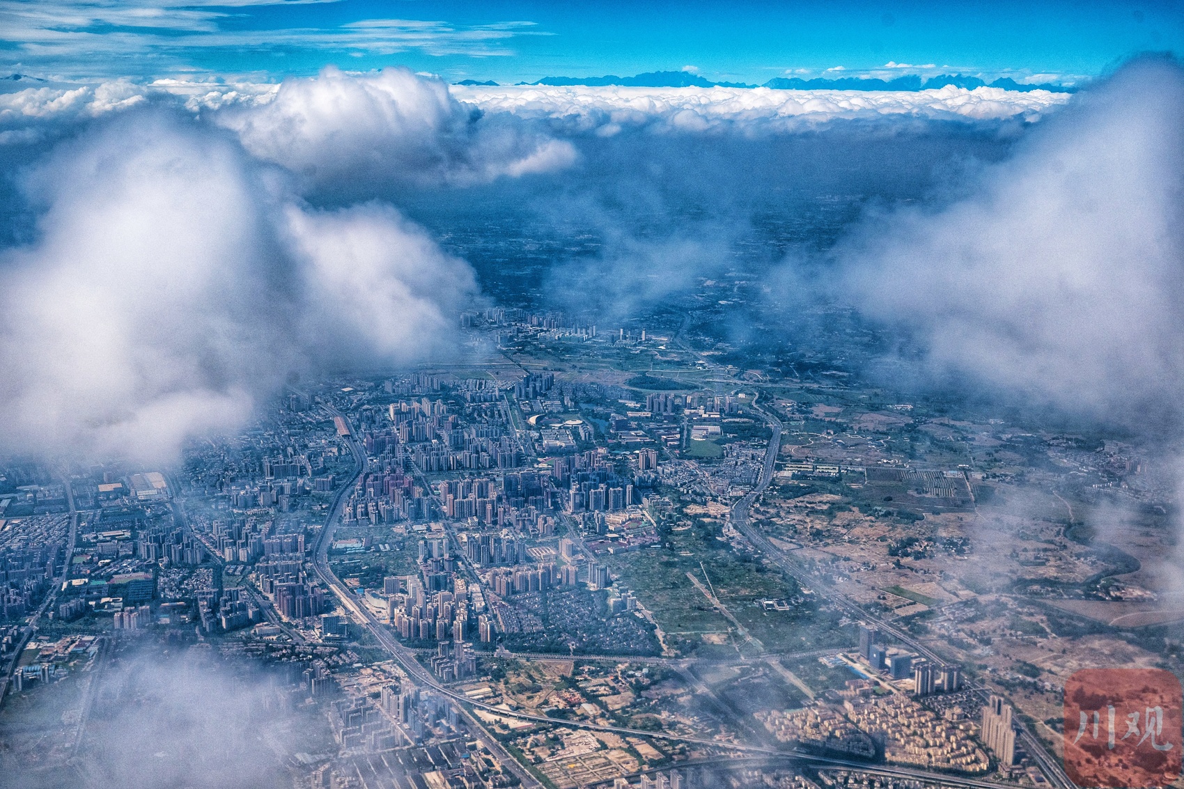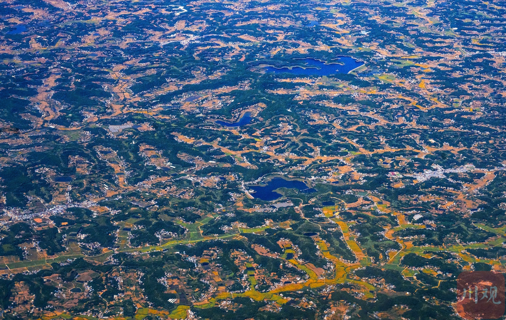 9月21日,四川盆地迎来晴朗天气,川观新闻记者在成都飞往杭州的航班上,于万米高空之上拍下城市、村庄、农田等,记录下天府大地秋高气爽的美景。