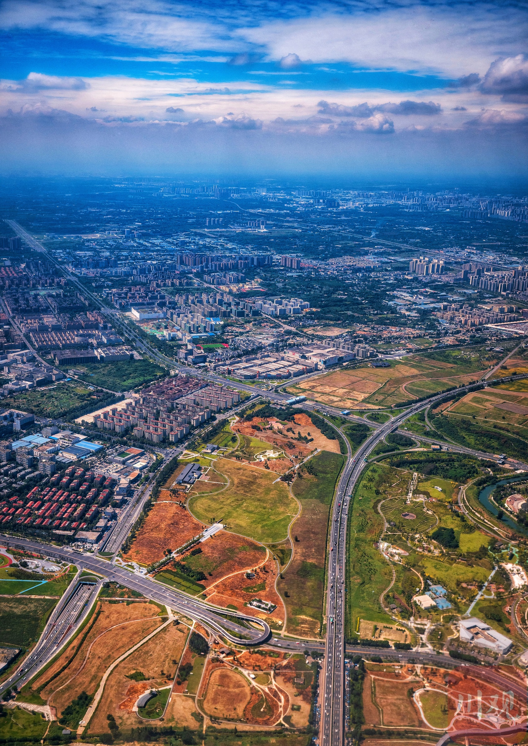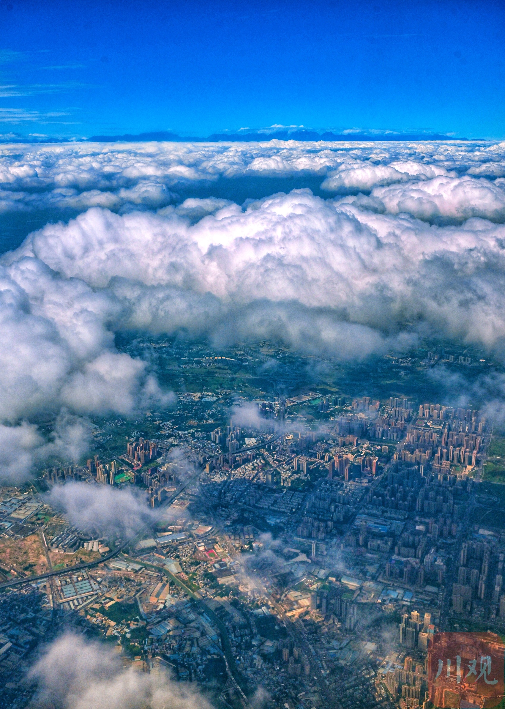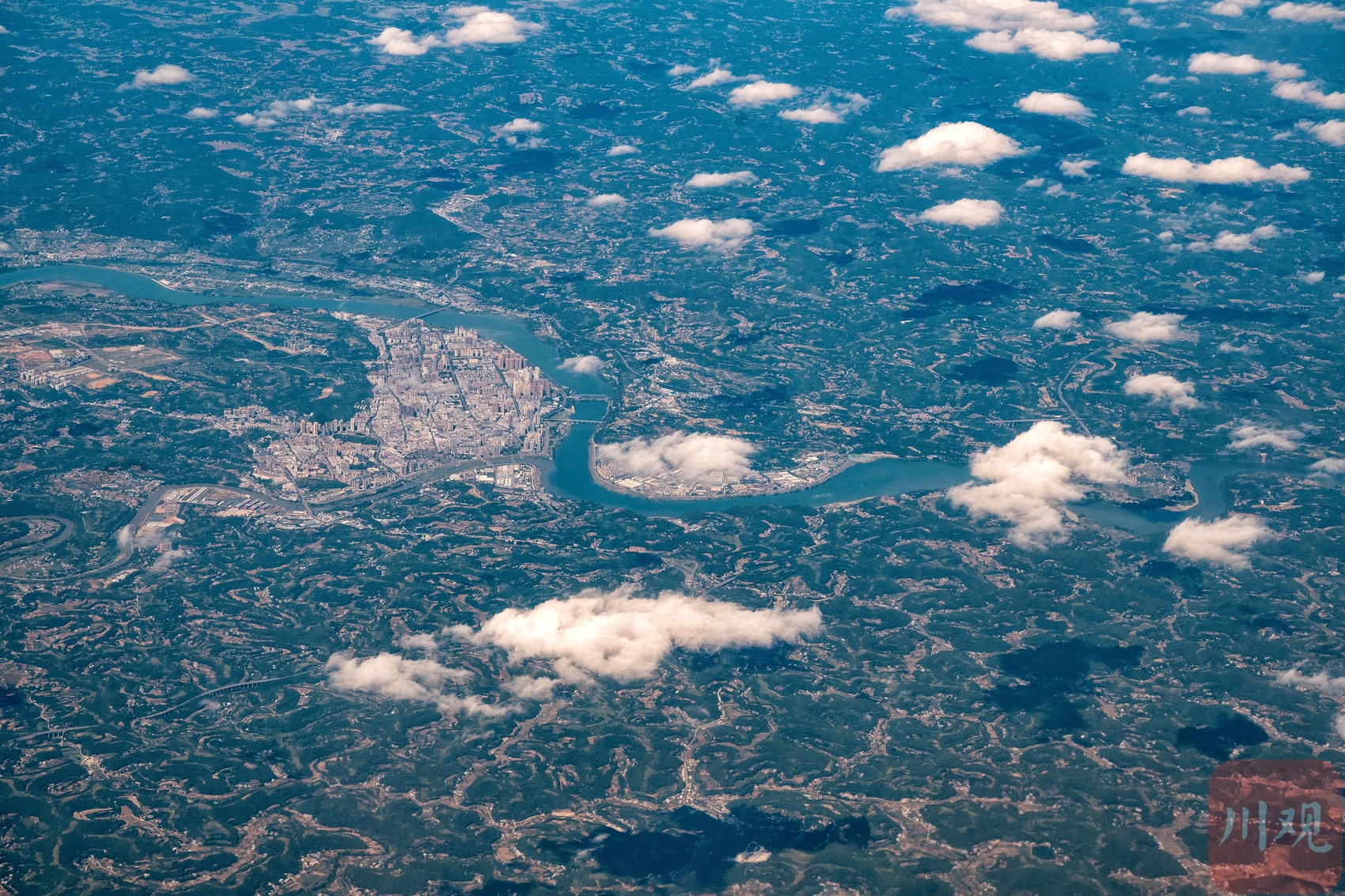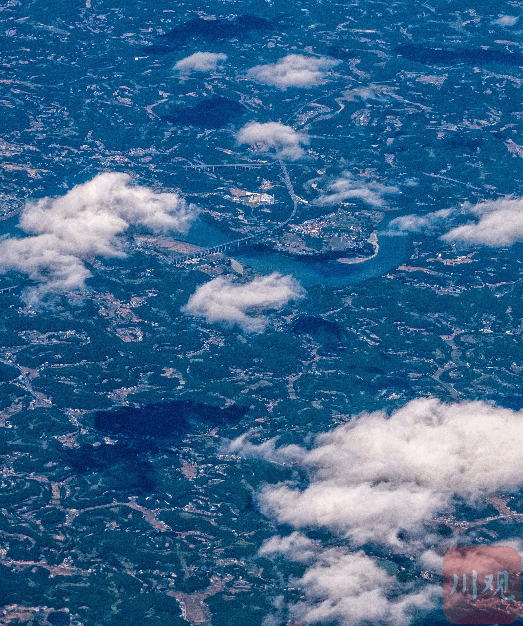 9月21日,四川盆地迎来晴朗天气,川观新闻记者在成都飞往杭州的航班上,于万米高空之上拍下城市、村庄、农田等,记录下天府大地秋高气爽的美景。