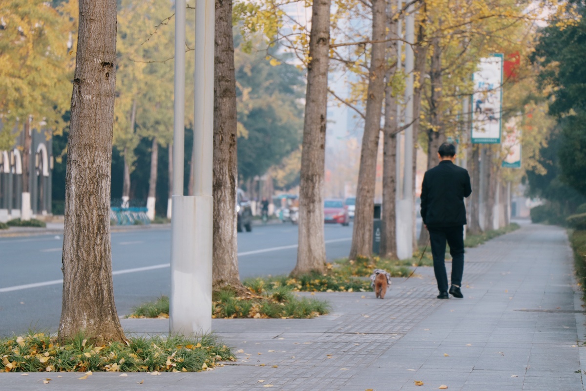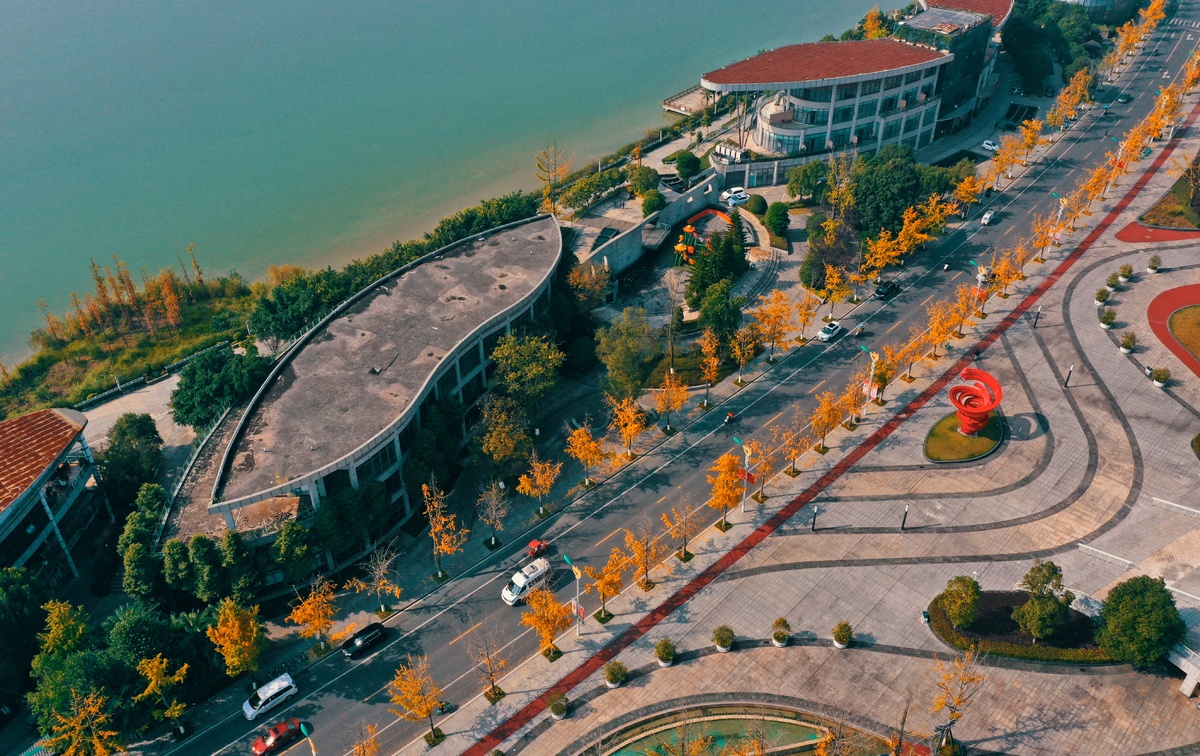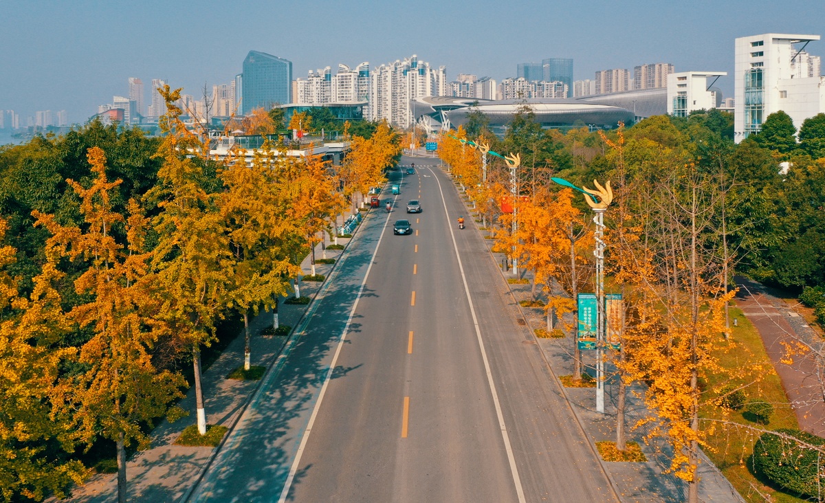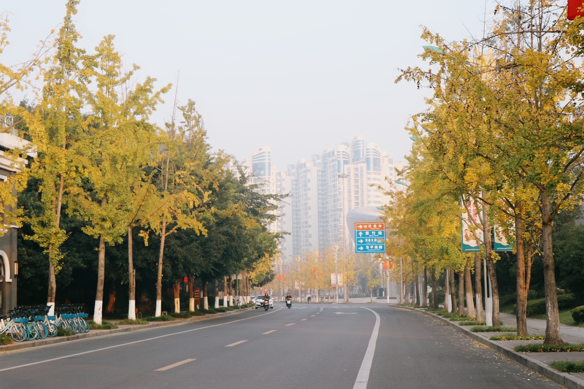 连日来,遂宁天气晴朗,遂宁市河东新区五彩缤纷路上银杏叶黄了,迎来最佳观赏期。
