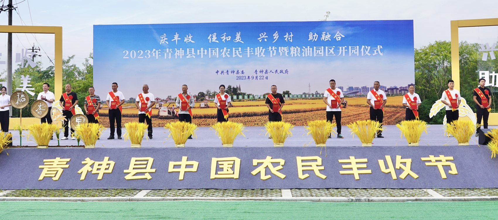 金秋时节,稻谷飘香。9月22日上午,在眉山市青神县农旅融合示范区——“稻香里”,一场农民运动会正在举行,来自青神县各乡镇的农民健儿,在运粮食、搓玉米、抓鱼比赛中大显身手,普通游客也能在推石磨、丰收集市上体验丰收带来的快乐。另外一边,2023年青神县中国农民丰收节暨粮油现代农业园区开园仪式正式启幕。