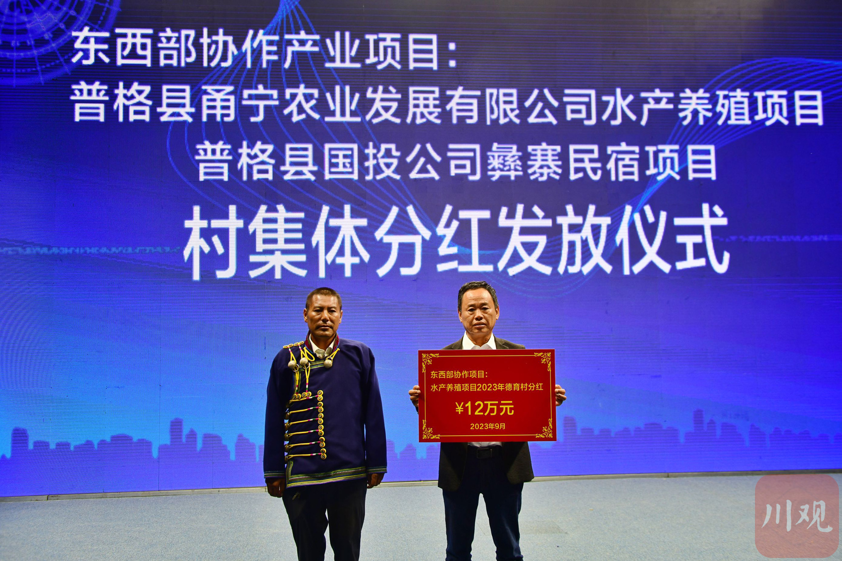 9月21日,在普格县首届螺髻山“乡村音乐节”上举行了村集体经济分红仪式,该县甬宁农业发展有限公司水产养殖项目为德育村带来12万元分红,彝寨民宿项目带来10万元分红。