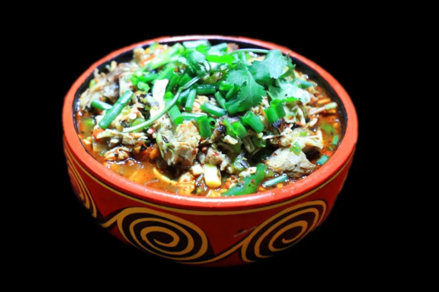 说起峨边的代表性美食,坨坨肉必有一席之地,因其每一块肉的重量在二三两上下,成“坨”状而得名。吃坨坨肉,最好一口一个,Q弹紧致的肉肉,搭配彝族风味调料,美味在舌尖上悄然绽放。