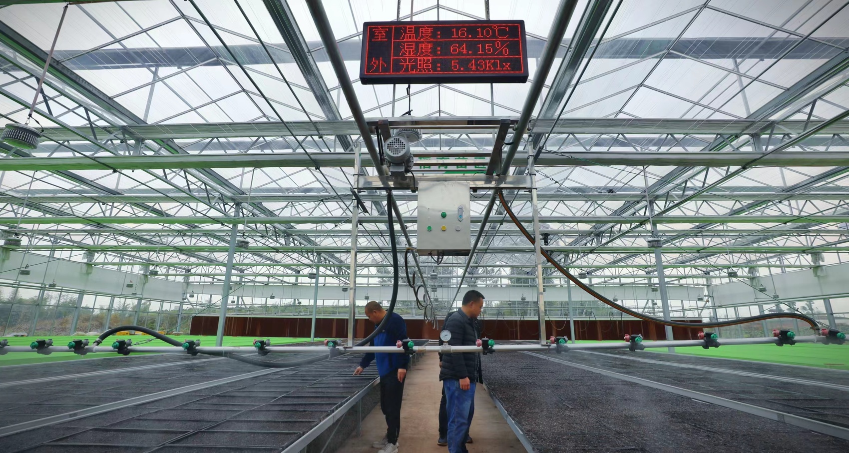 今年3月,代寺镇李子村的智慧育秧中心投入使用。该中心包含了播种流水线、营养土制作存储区、种子处理区、秧盘堆放区、暗化催芽室、辅助功能区等。“这条育秧生产线的秧盘在楼上,通过机械传送带有序运送下来,然后一路过去,覆土、把土分成条播状、洒水、撒种、再盖土、再洒水,然后机械臂码盘、再由叉车送入暗化室进行暗化出苗,整个智慧化流水线实现数字化控制。”智慧育秧中心技术员表示,该智慧育秧中心,从调光到控温、从播种到喷淋、从空间到地面,都是智能控制。