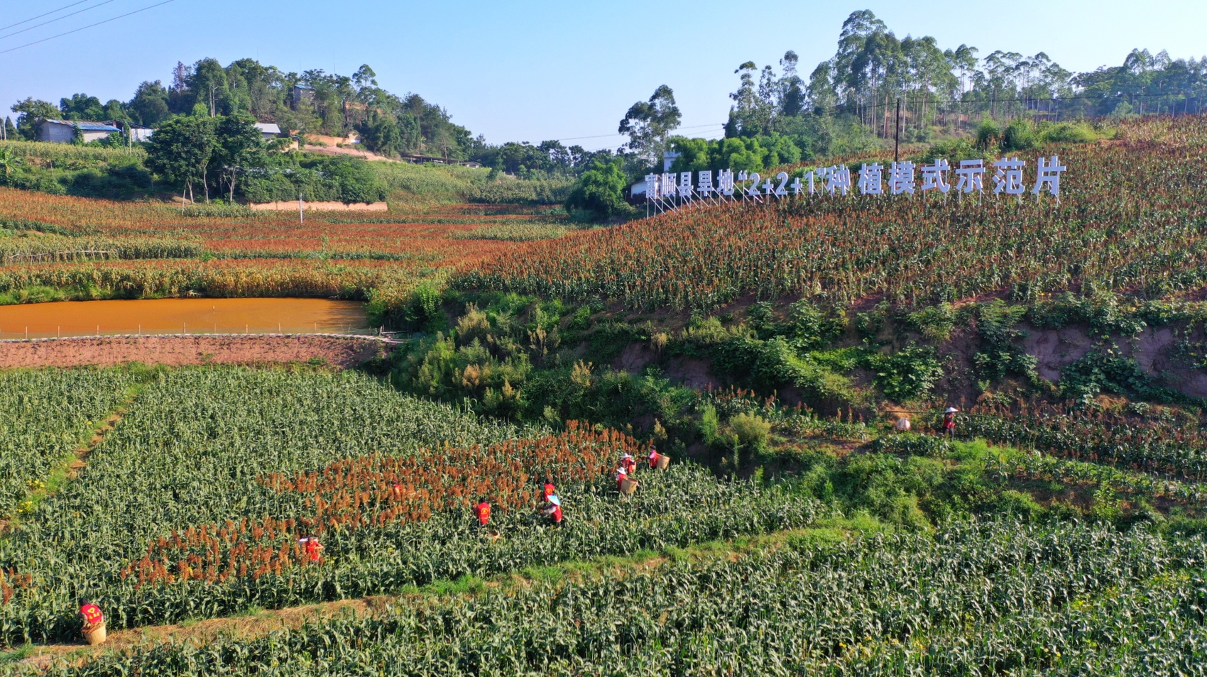 与此同时,富顺县在园区大力推行“中稻+再生稻+稻田综合种养+田埂大豆高粱(玉米)”模式,亩产中稻650至700公斤、再生稻250至350公斤、田鱼150至200公斤、田埂大豆高粱(玉米)30至50公斤,每亩总产值超过5000元,实现“吨粮田五千元”。同时,突出品质培优、品质提升、品牌打造、标准化生产“三品一标”提升粮食品质,注重推动“粮食+工业”“粮食+电商”“粮食+旅游”的“接二连三”融合发展,最大程度保障粮食增产增效。