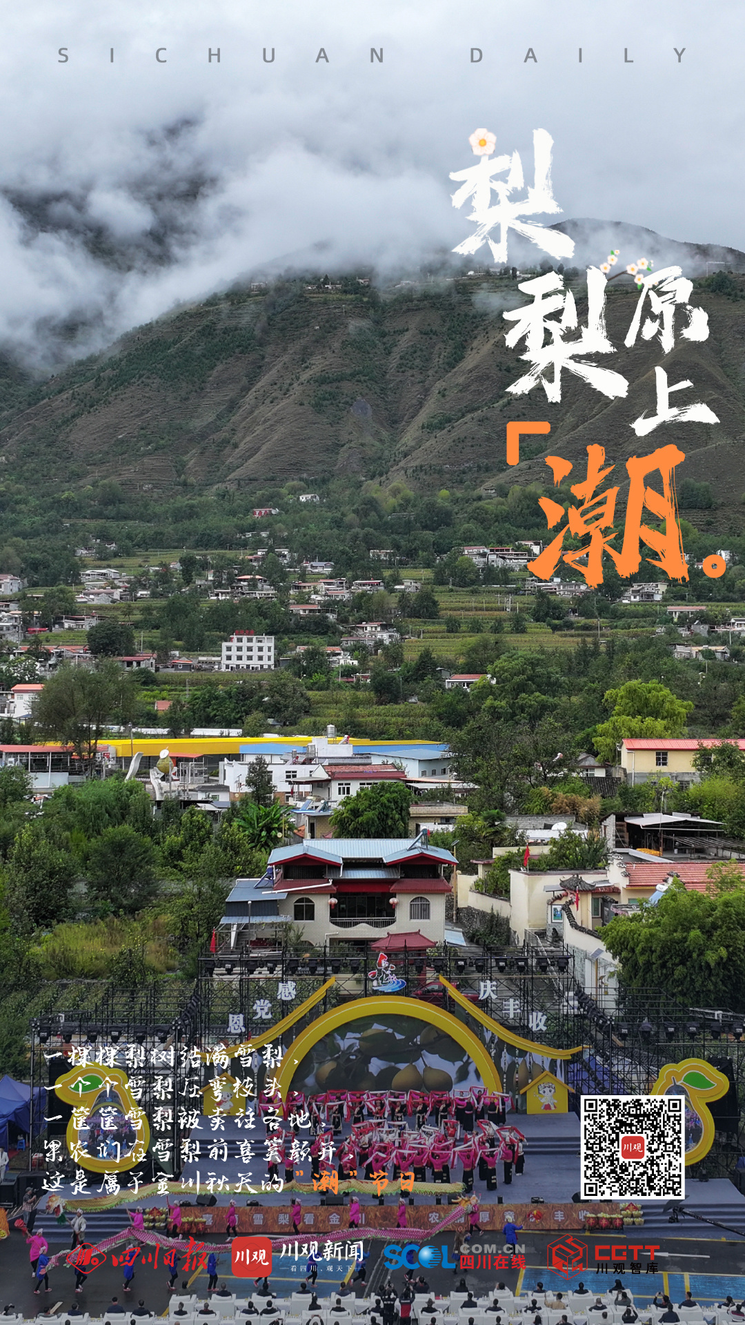金秋九月,梨压枝头,在有着“中国雪梨之乡”的阿坝州金川县迎来了雪梨丰收季。9月23日上午,以“喜摘雪梨看金川 农情厚意庆丰收”为主题的2023中国农民丰收节暨金川雪梨采摘节在金川县沙耳乡沙耳尼村开幕,金川儿女载歌载舞,庆祝丰收喜悦的同时,还以梨为媒,欢迎四方宾朋,在梨园里体验采摘的乐趣。