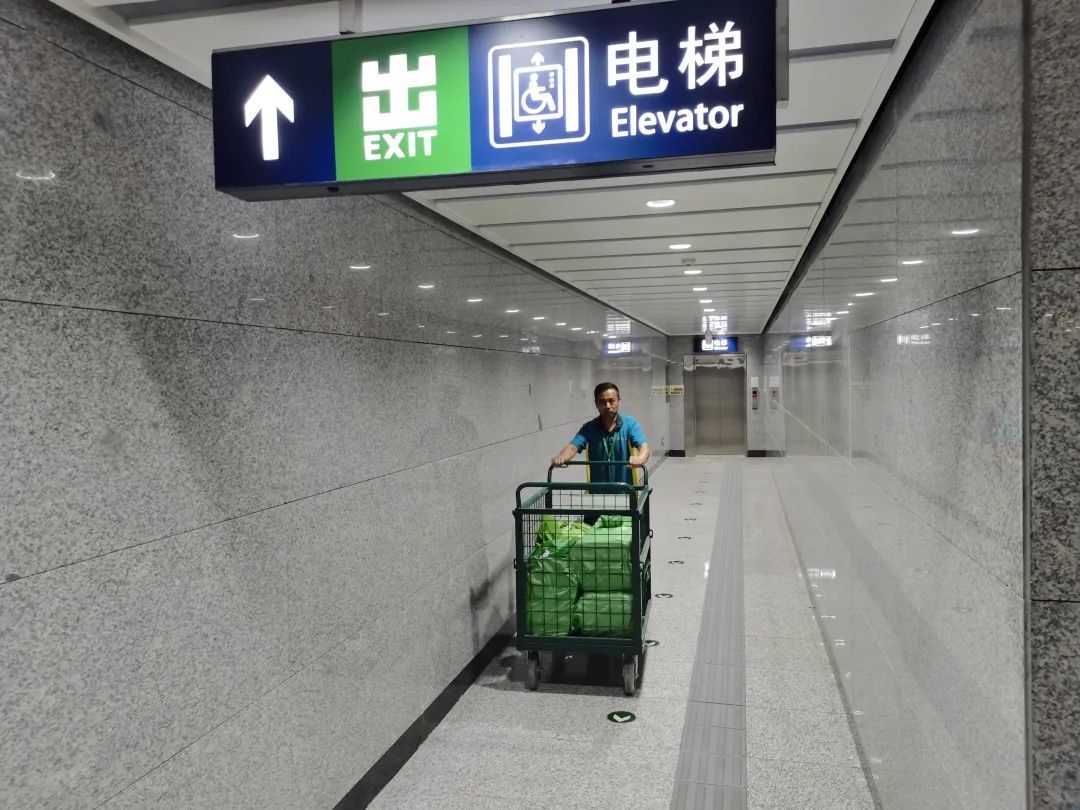 两条试点线路均安排专人进行跟车押运,确保货物在地铁车厢内运输时,有专人看管,确保货物在运输过程中不影响乘客出行。