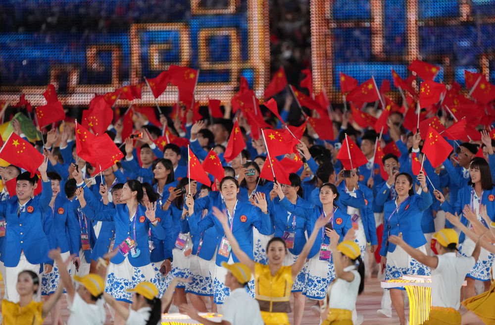 中国代表团在开幕式上入场。图源新华社