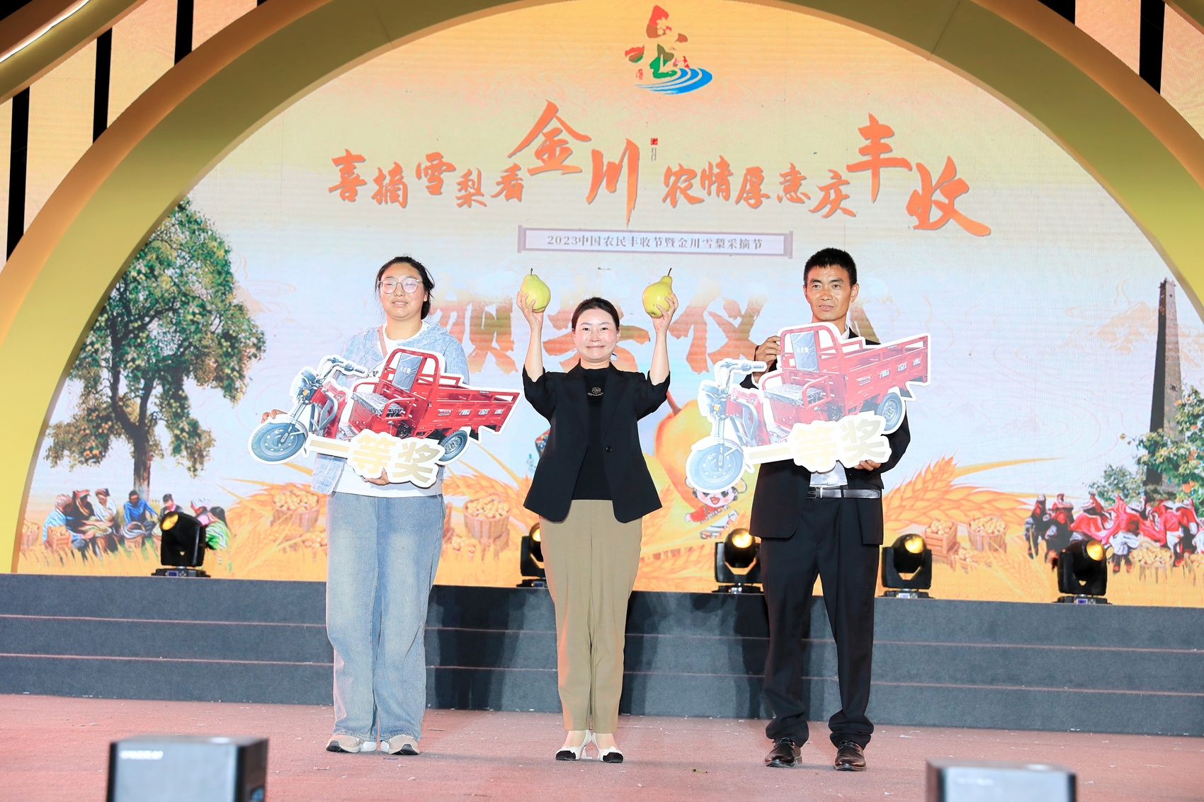 “这个口感不错”“这个外观最好”“这个梨的个头最大”。9月23日,2023中国农民丰收节暨金川雪梨采摘节开幕,“梨王”争霸赛作为“重头戏”压轴出场,优势各不相同的雪梨“同台竞技”,也引起了现场观众的热热烈关注。