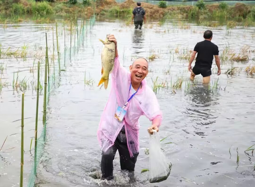 浑水摸鱼、钓小龙虾、打糍粑、品尝农特产品,农民朋友在这次丰收节中感受到了丰收时节的田野乐趣。