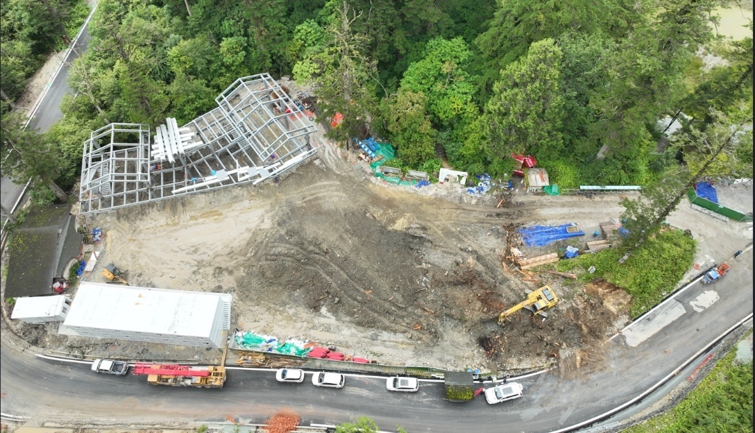9月12日,海螺沟景区一号营地,以贡嘎主峰海拔高度7556米这一数字为原型设计的大门已具雏形,“这个大门既是景区的标志性节点,也是海螺沟全新形象的精神载体。”中建八局项目经理刘泰安告诉记者,目前景区大门、游客中心等标志性建筑的主体结构已经完成。