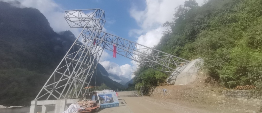 以贡嘎主峰海拔高度7556米这一数字为原型设计的大门已具雏形。中建八局供图