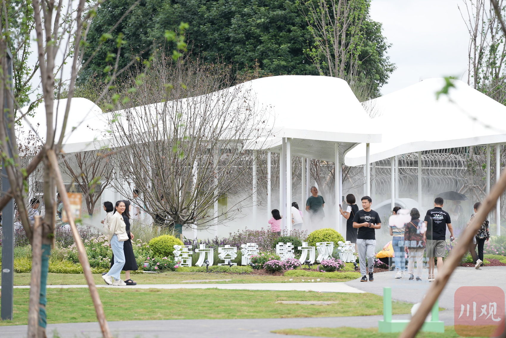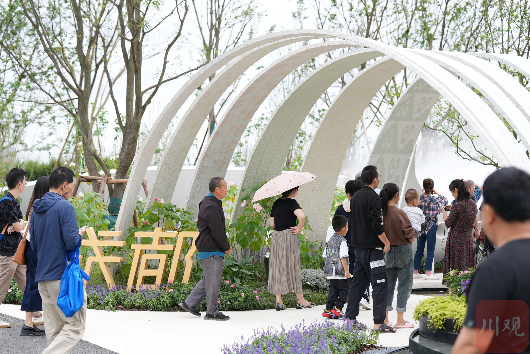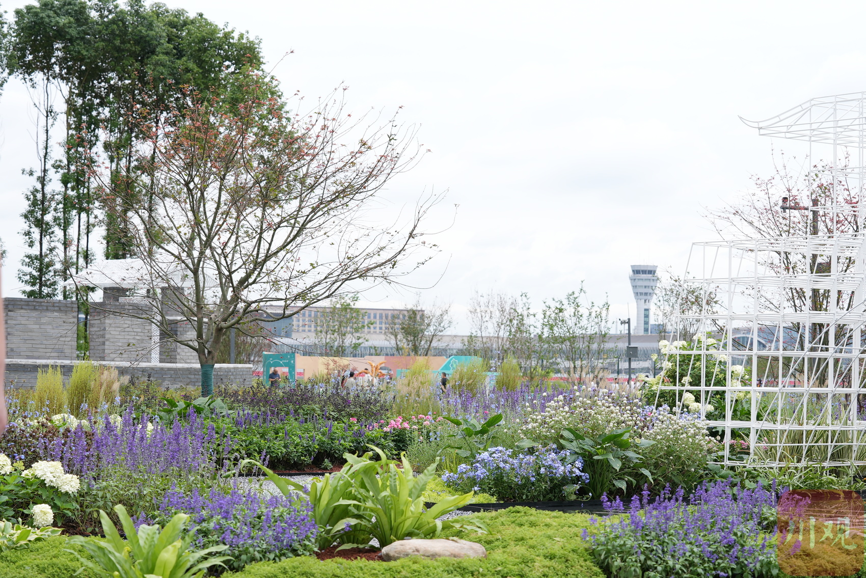 从2023成都花展现场,可以远望双流机场塔台。