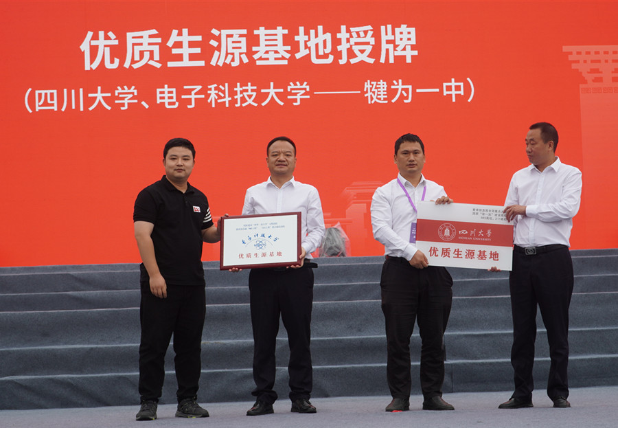 四川省体育局、乐山市体育局为犍为一中“国家高水平体育后备人才基地”和“四川省重点高水平体育后备人才基地”授牌。北京大学、清华大学、复旦大学、浙江大学、中国科学技术大学、中国人民大学、国防科技大学等52所高校相继发来贺信。国家杰出青年、北京大学教授、犍为一中2000届毕业生彭影杰代表广大校友发言祝贺母校生日。