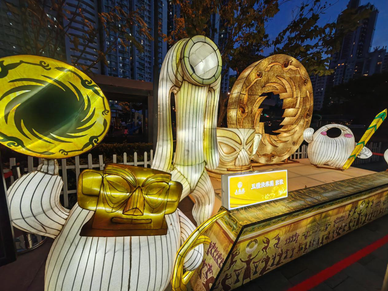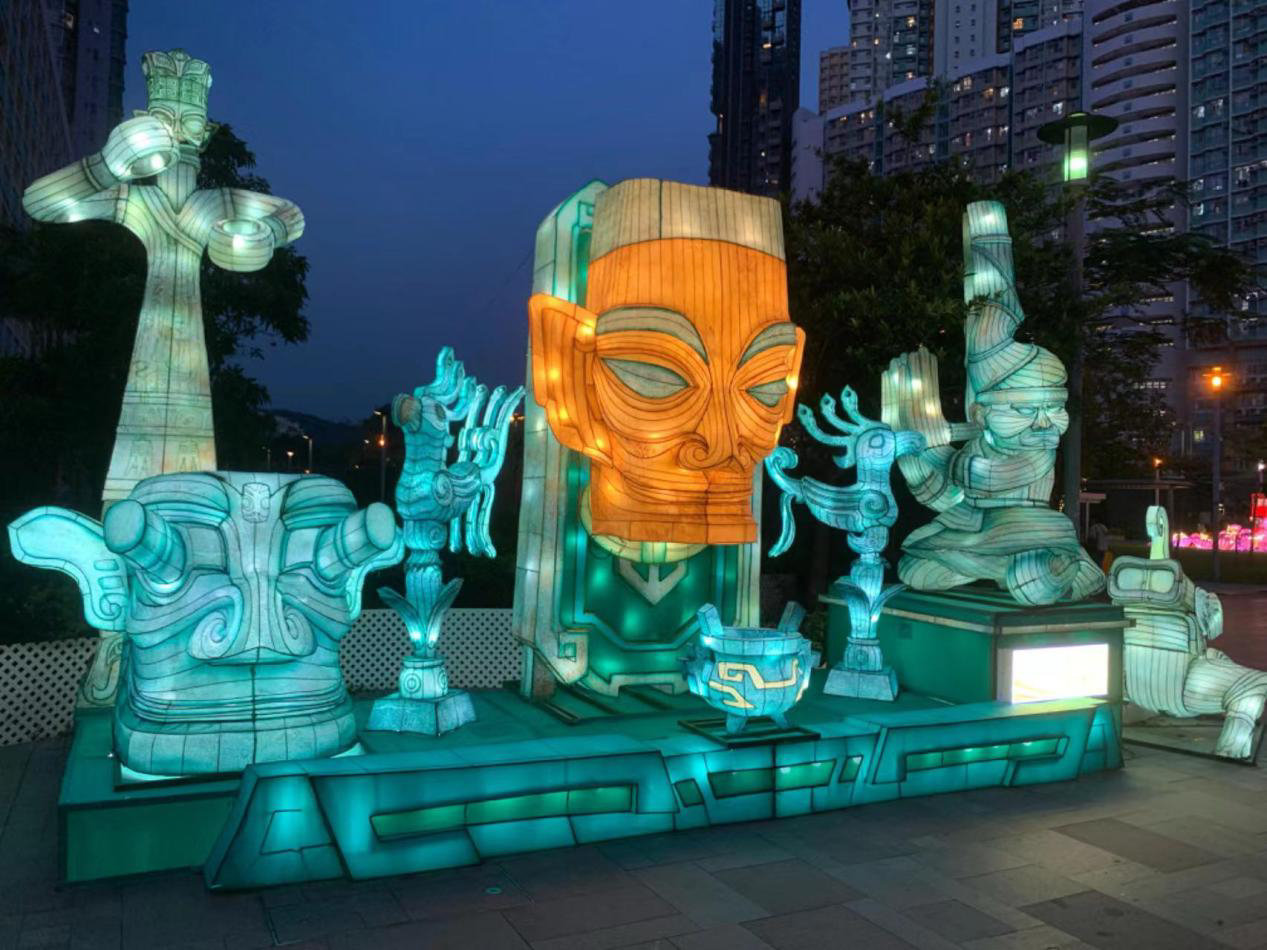 此次灯会以“川灯耀香江”为主题,突出设计创新、文化互动,为香港市民呈现出一场流光溢彩的川港文化视觉盛宴。据了解,灯会精心布置了《紫荆熊猫》《香港印象》《天涯共此时》《保仔出海》《古蜀之光》《击鼓说唱俑》《三星秘境》《麻辣鲜香》《千里共婵娟》等11个大中型文化主题创意灯组,通过对香港与四川文化的生动展现,表达了欢乐吉祥、共向未来的美好愿望。