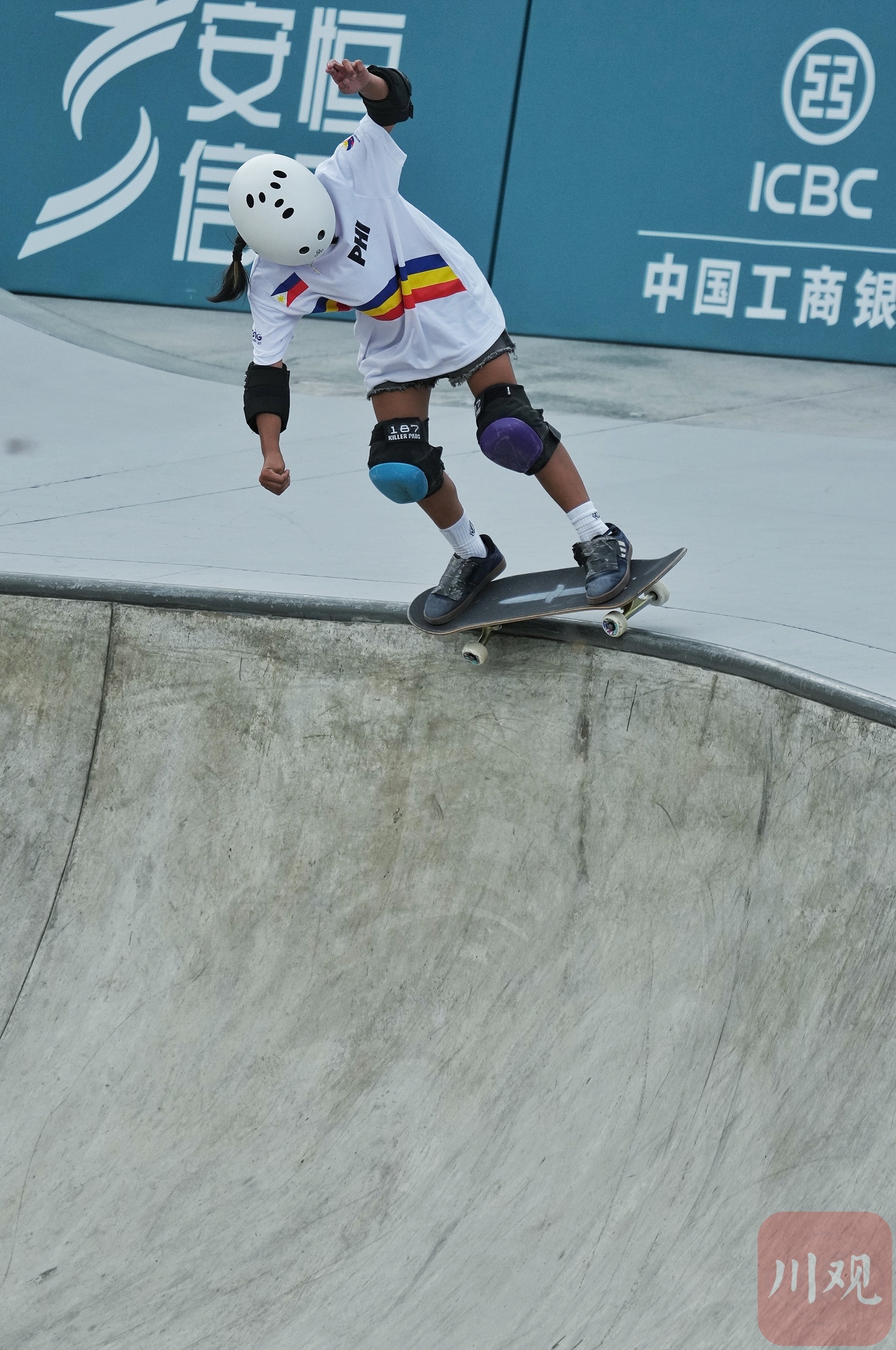 今天的女子碗池决赛,马塞尔·帕丽斯的表现赢得了教练和观众的阵阵掌声,她最终获得了第7名。虽然没能站上领奖台,但赛后接受采访时,她说非常享受比赛,只想玩得开心,也非常喜欢本届亚运会的滑板场地。
