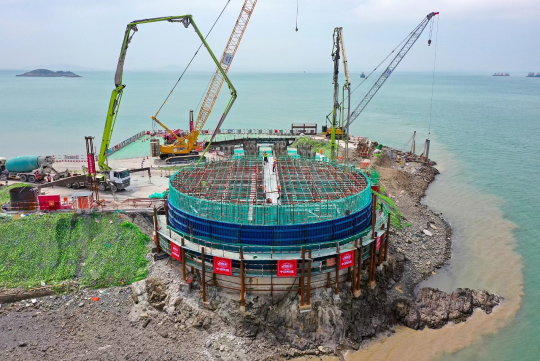 图为双屿门特大桥主桥索塔承台浇筑现场。(中国铁建大桥局供图)