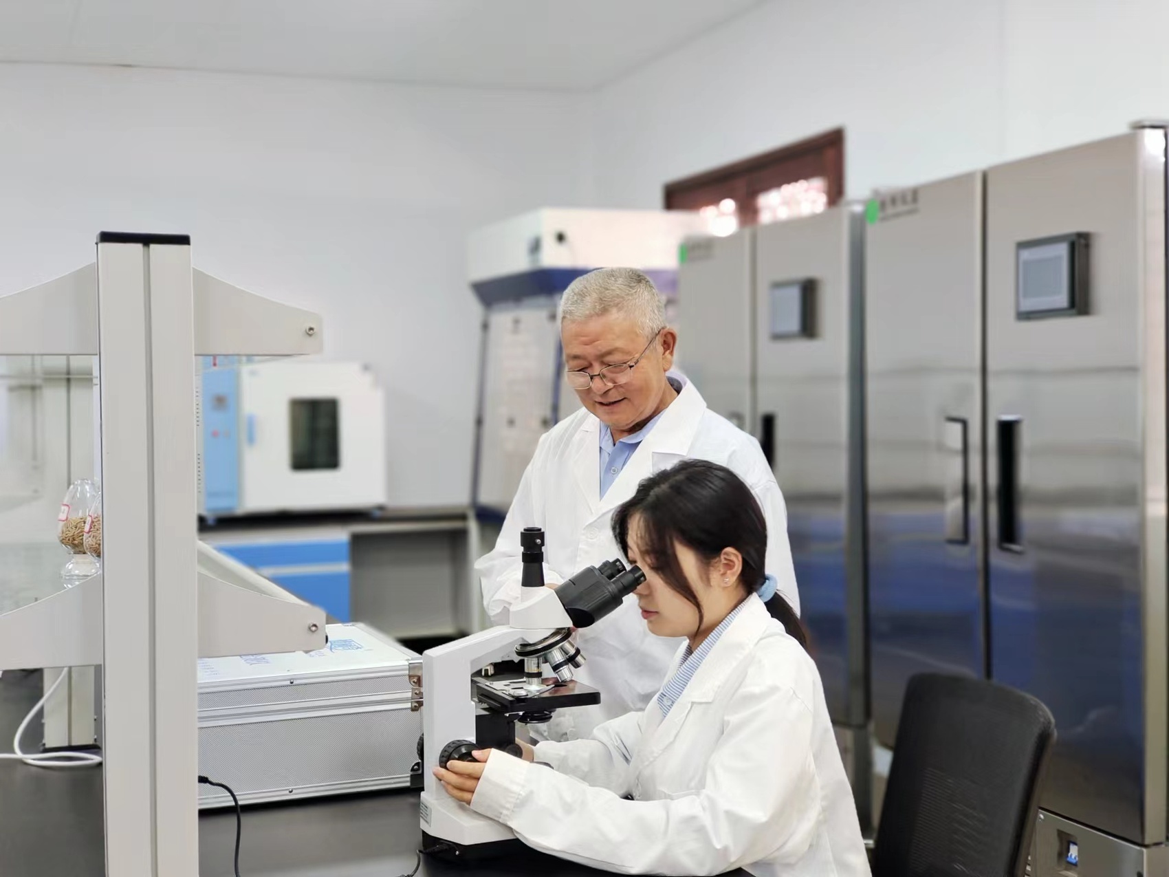 昭化区特优粮油首席专家陈定全和实验人员一起对今年收获的育种材料进行初步分析。昭化区委宣传部 供图