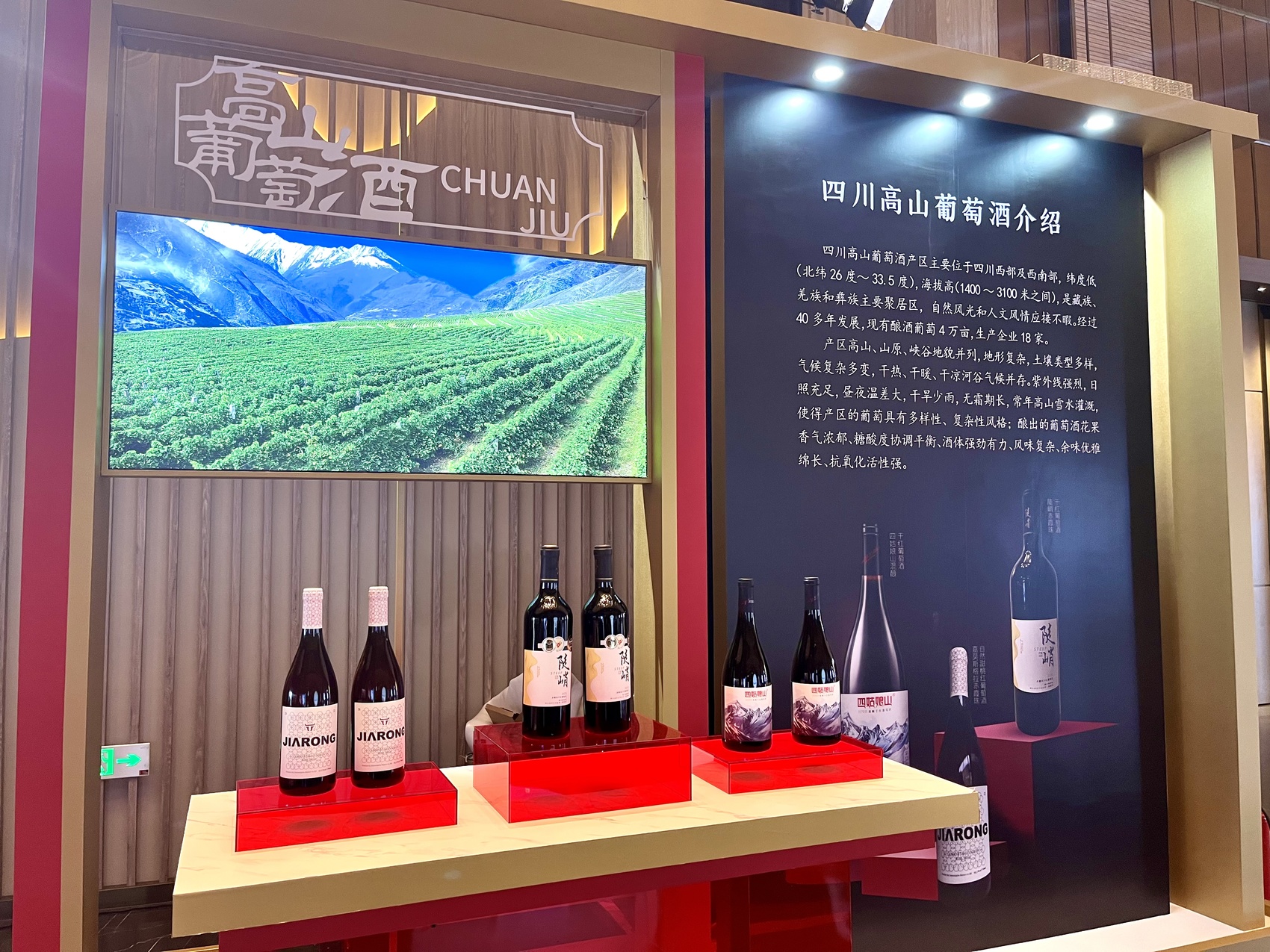 目前,四川现有一定生产规模和能力的酿酒葡萄生产企业共18家,初步形成了一个全系列产品的局面。其中,“陡峭”“神川红”“亚丁红”“九寨庄园”“正大月谷”“C-47”“扎西尼玛龙”“四姑娘山”“嘉莫斯格拉”等品牌也在多项国际专业大赛中获得金奖和银奖、铜奖。