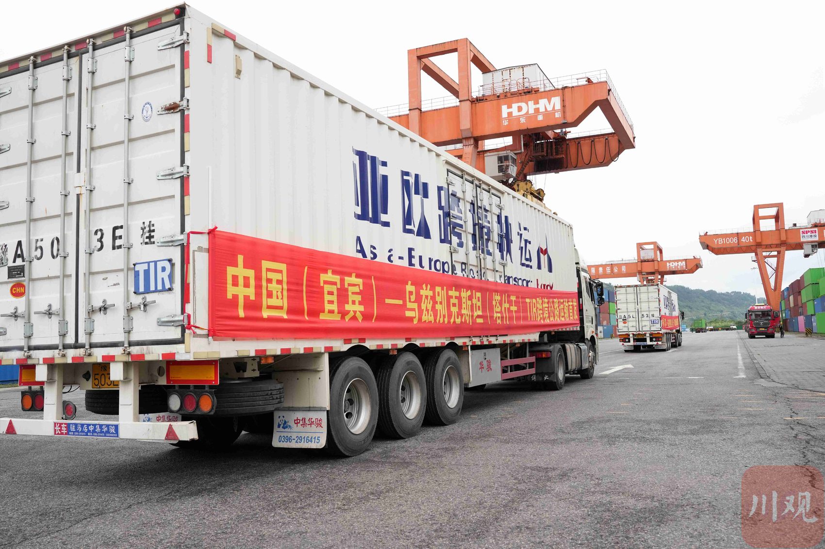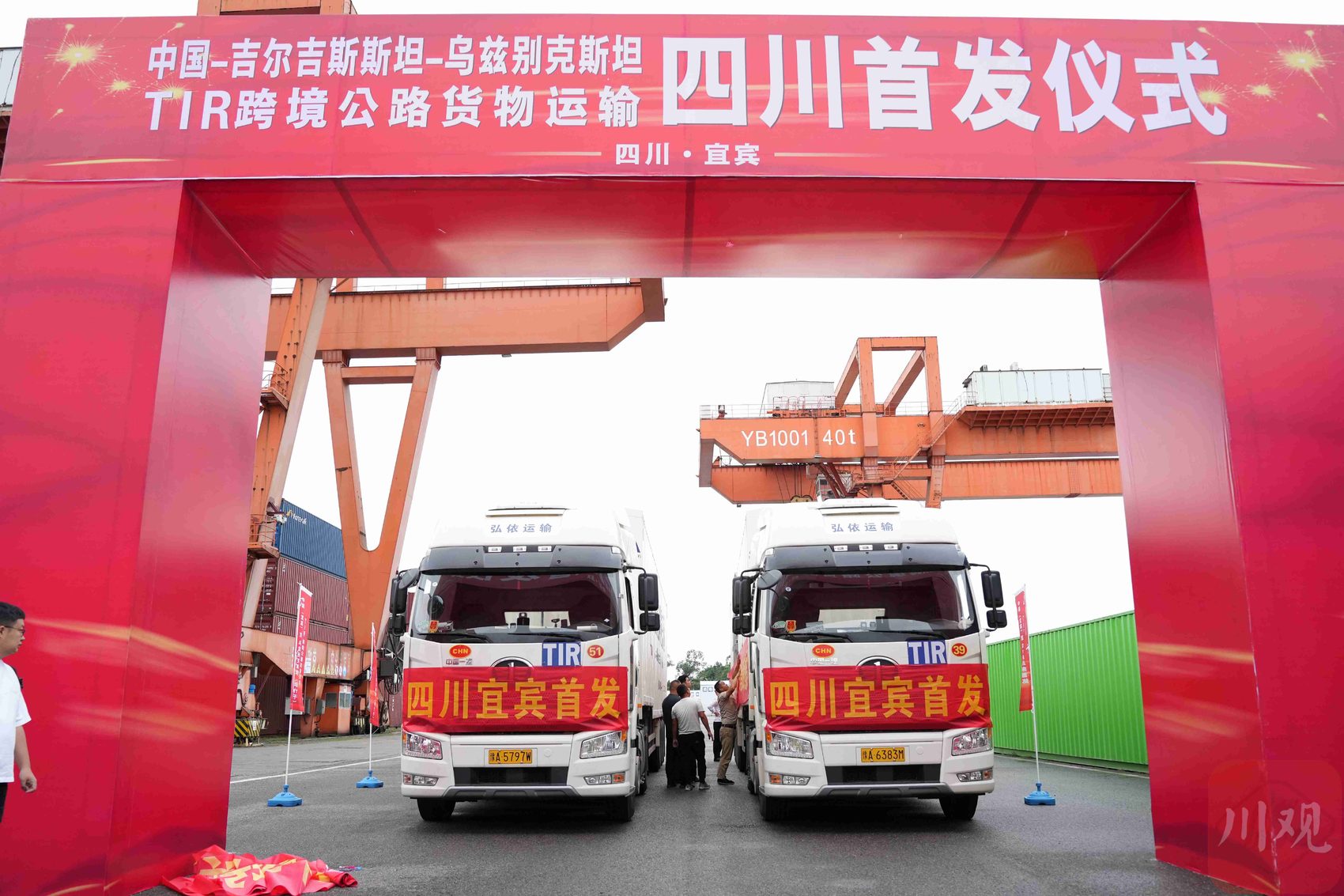 9月26日下午,两辆满载宜宾茶叶、悬挂TIR标识牌的集装箱卡车,在宜宾海关完成TIR检查、单证签注、监管施封后,缓缓驶出宜宾港国际集装箱码头,标志着四川省首条TIR国际跨境公路货运线路(中国—吉尔吉斯斯坦—乌兹别克斯坦)正式开通。