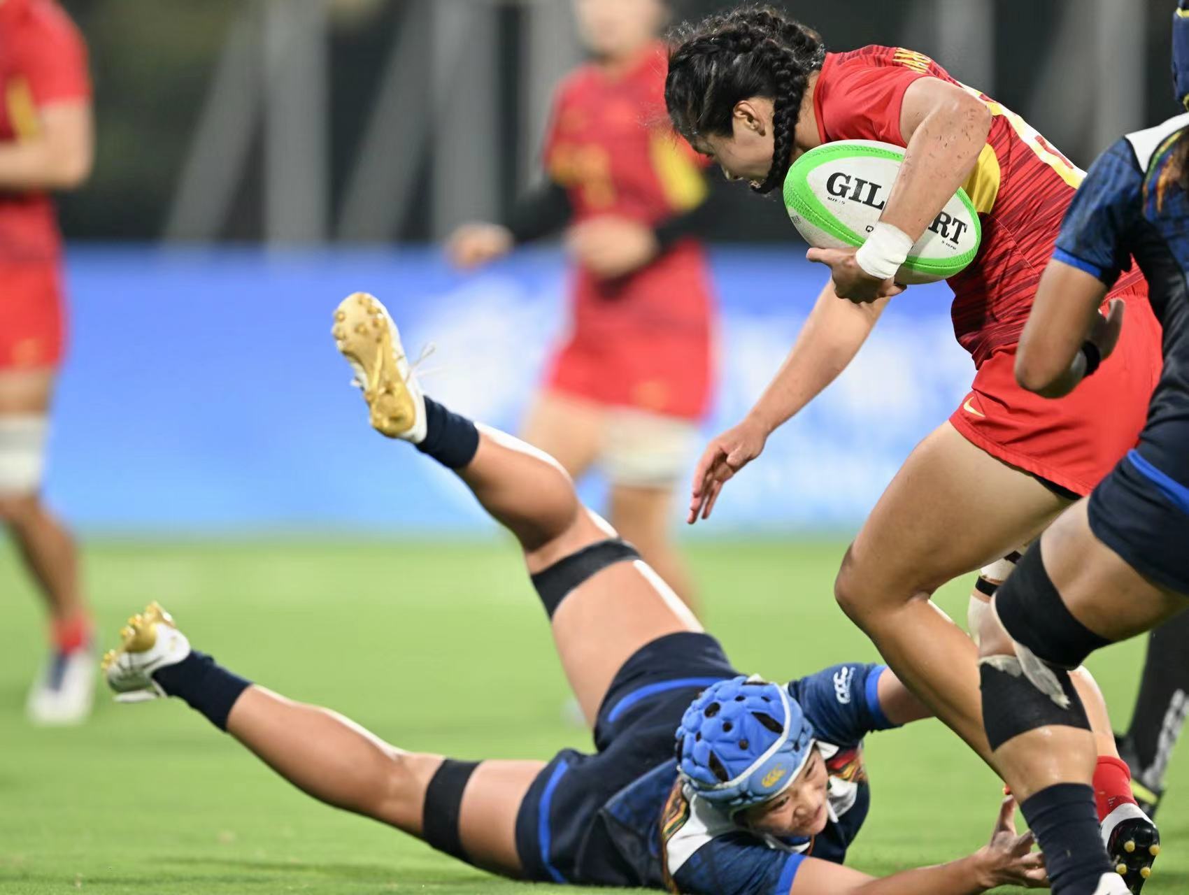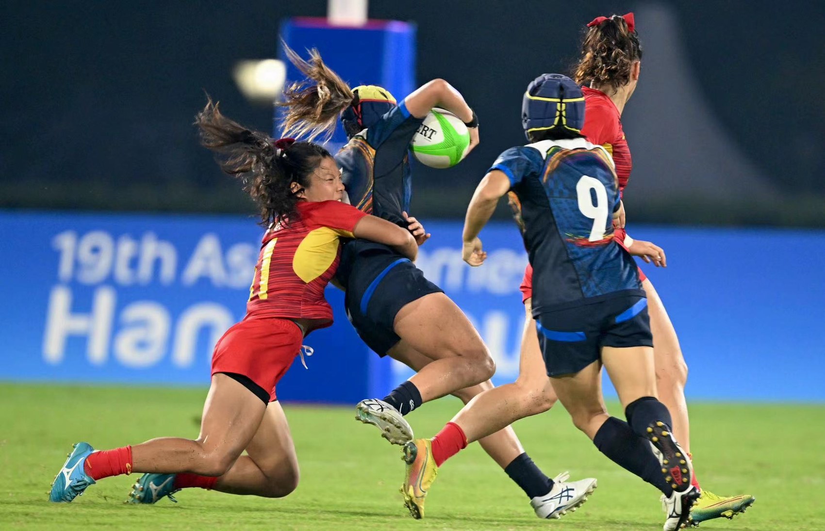 在这支队伍中,陈可怡是当仁不让的主力。1995年出生的她目前效力于江苏女子橄榄球队。她在国家队体会过雅加达亚运会决赛铩羽而归的遗憾、感受过东京奥运会创造历史闯入前八名的自豪。陈可怡还是连续三届代表中国出战亚运会的老将,曾在仁川亚运会与队友一起登上亚洲之巅,这枚金牌也是她拿到的第二枚亚运会金牌。