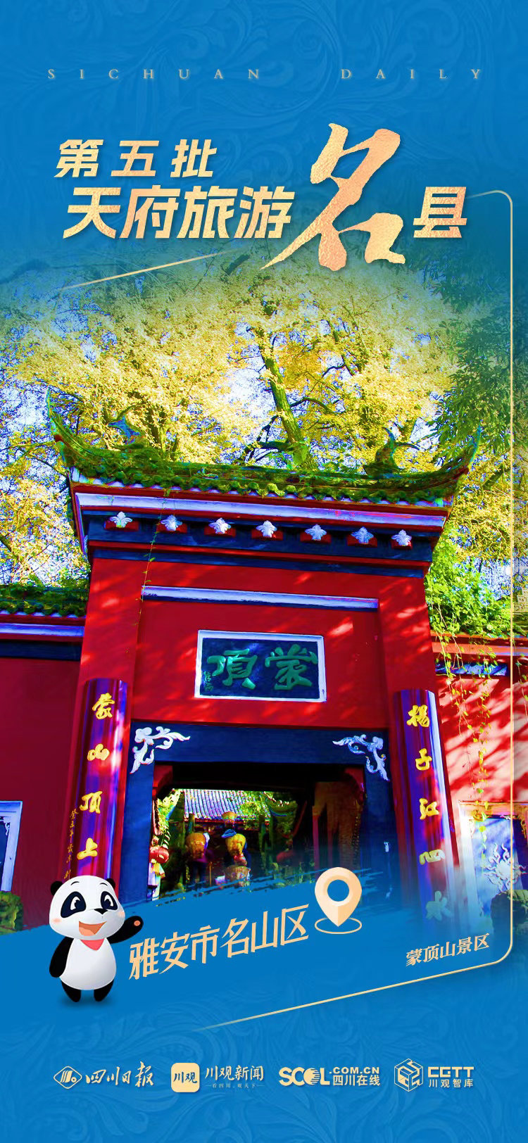 名山,境内有世界茶文化圣山——蒙顶山而得名,因茶产业而闻名,是世界有文字记载最早人工种茶的地区,被誉为“世界茶文明发祥地、世界茶文化发源地”。辖区拥有世界级非遗项目1项、全国重点文物保护单位2处、全国农业旅游示范点1个、国家4A级旅游景区3个,2022年接待游客558.5万人次,实现旅游收入60.76亿元。