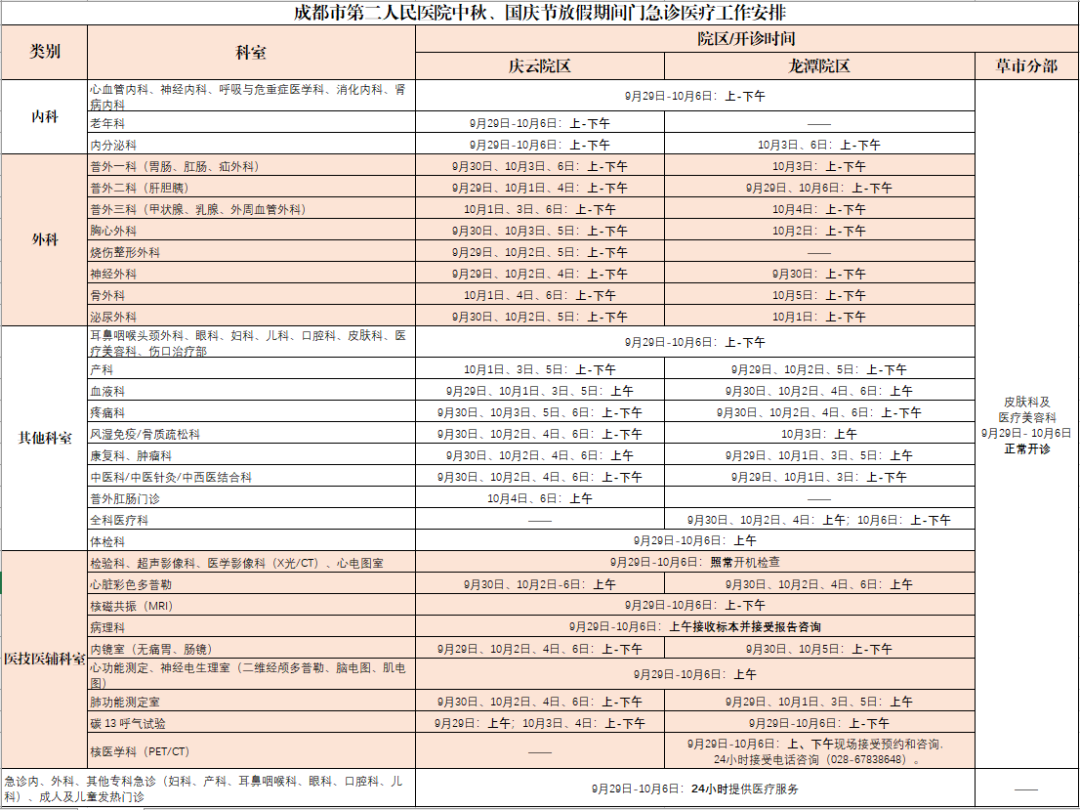 成医附二院·416医院2023年中秋节、国庆节(9月29-10月6日)门诊各科室均正常出诊。
