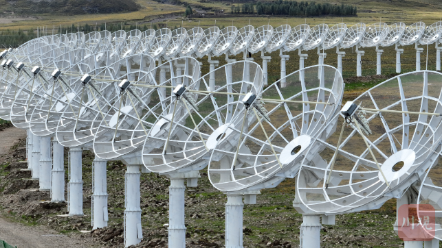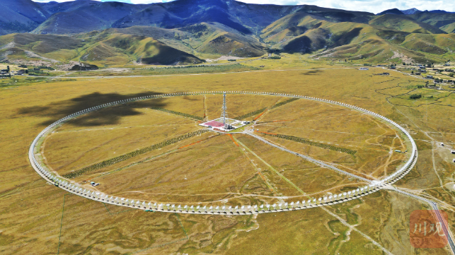 圆环阵位于海拔3820米的四川省稻城县噶通镇,占地面积约1平方公里,由313部直径6米的抛物面天线构成,被誉为“千眼天珠”,是目前已建成的全球规模最大的综合孔径射电望远镜,主要对太阳和日地空间传播链条进行高质量监测。