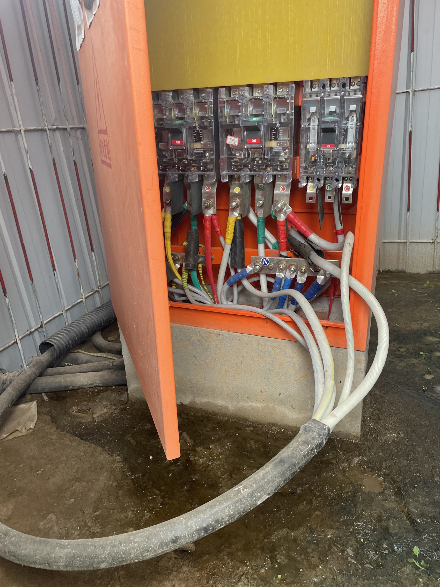 实地查看配电房,再核对临时用电方案,让暗访组感到忧心。配电房设置跟规范标准严重不符,四周仅用铁皮围住,一级电箱进出线没有按规范铺设,缺乏防雨、防潮、防小动物等措施,也没有安全操作流程。
