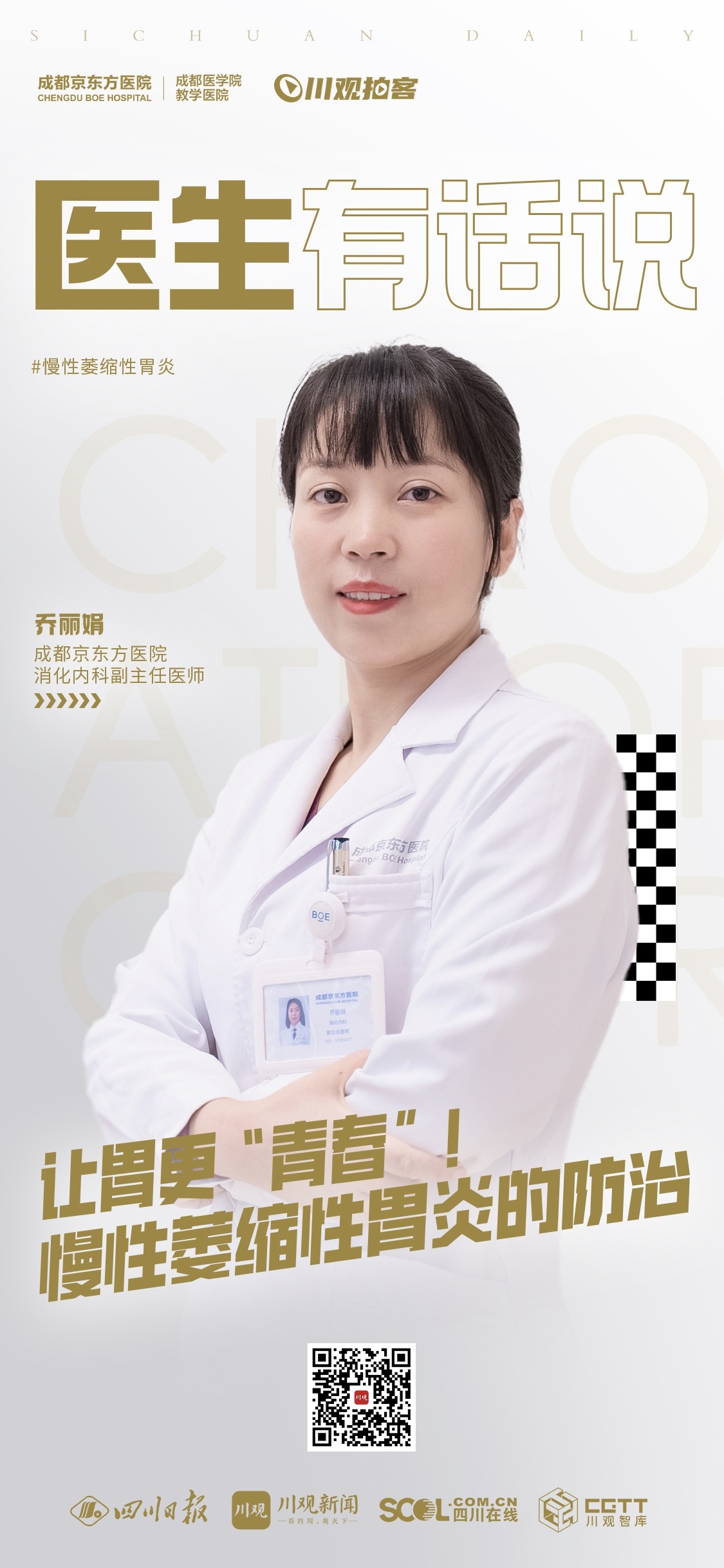 本期《医生有话说》,我们邀请到来自成都京东方医院的主任医师跟大家聊一聊慢性萎缩性胃炎的防治话题。