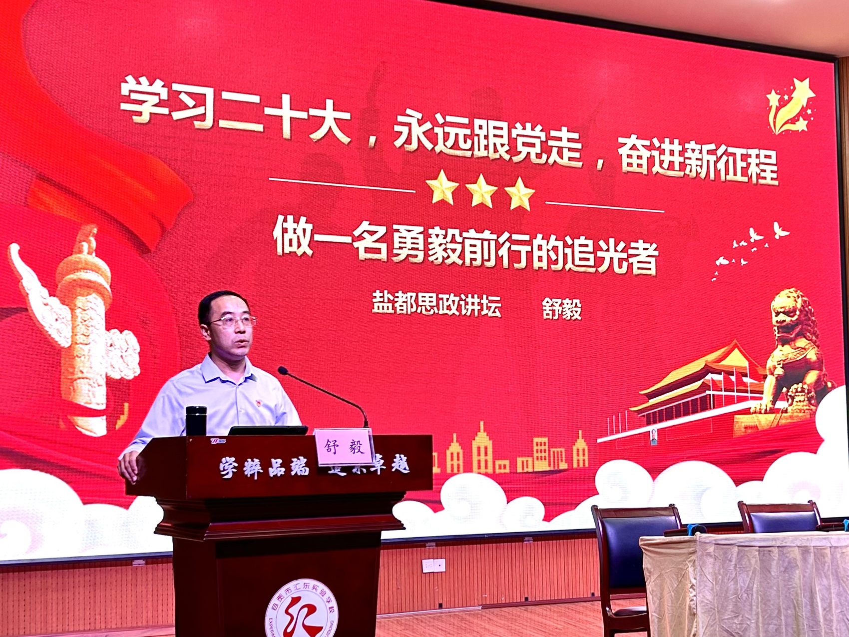 “盐都思政讲坛”是自贡深入实施时代新人铸魂工程所打造的本土思政品牌,今年,该讲坛围绕红色文化、国防教育、历史人文、科技创新、社会治理等内容,精心打造“不忘初心 扬帆远航”“永远跟党走 奋进新征程”“新时代 新征程 新伟业”课程。