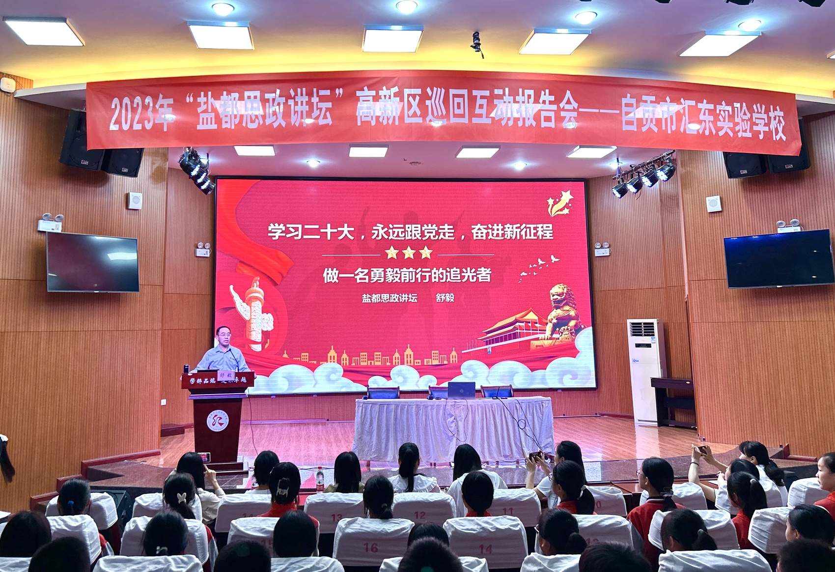 “‘盐都思政讲坛’对于引领和提高学校思政教育质量和水平,促进广大学子牢固树立崇高的理想信念,形成正确的世界观、人生观、价值观意义十分重大。”自贡市汇东实验学校党委书记周德华表示,希望学生们专心聆听、用心感悟、积极互动,把舒毅老师的教导内化于心,外化于行,坚定理想信念,刻苦学习,争做新时代的“爱国者”“建设者”“接班人”。