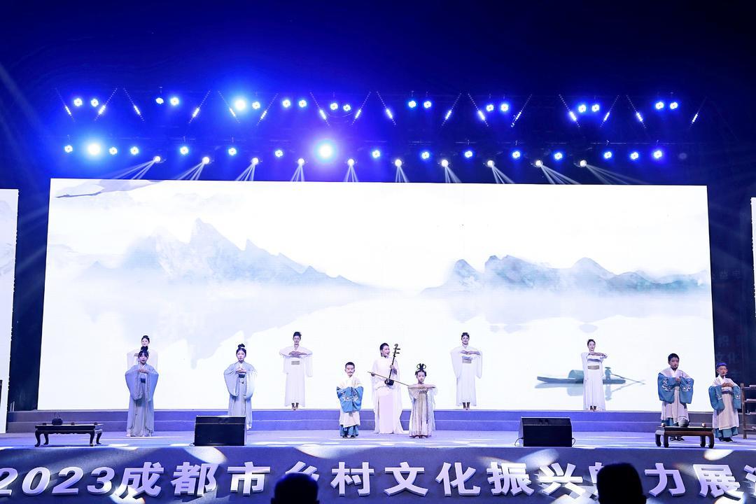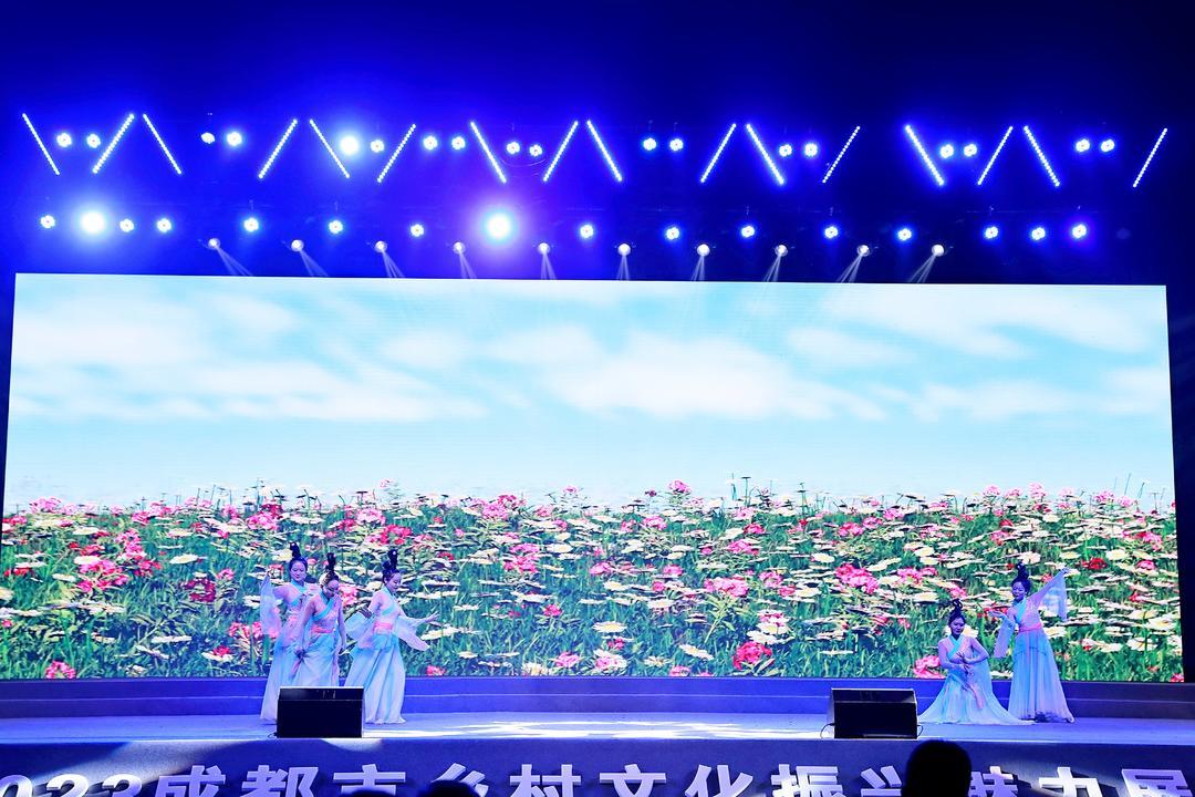 四川省第三届乡村文化振兴魅力竞演大赛(成都赛区)嘉年华活动以广袤乡村为大背景,以乡镇群众为主角,创新舞台策划、节目编排和视听呈现。以歌舞表演、情景讲述、非遗展演等丰富的表演形式为载体,配合大赛颁奖环节,全景展示成都乡村文化建设新成果。