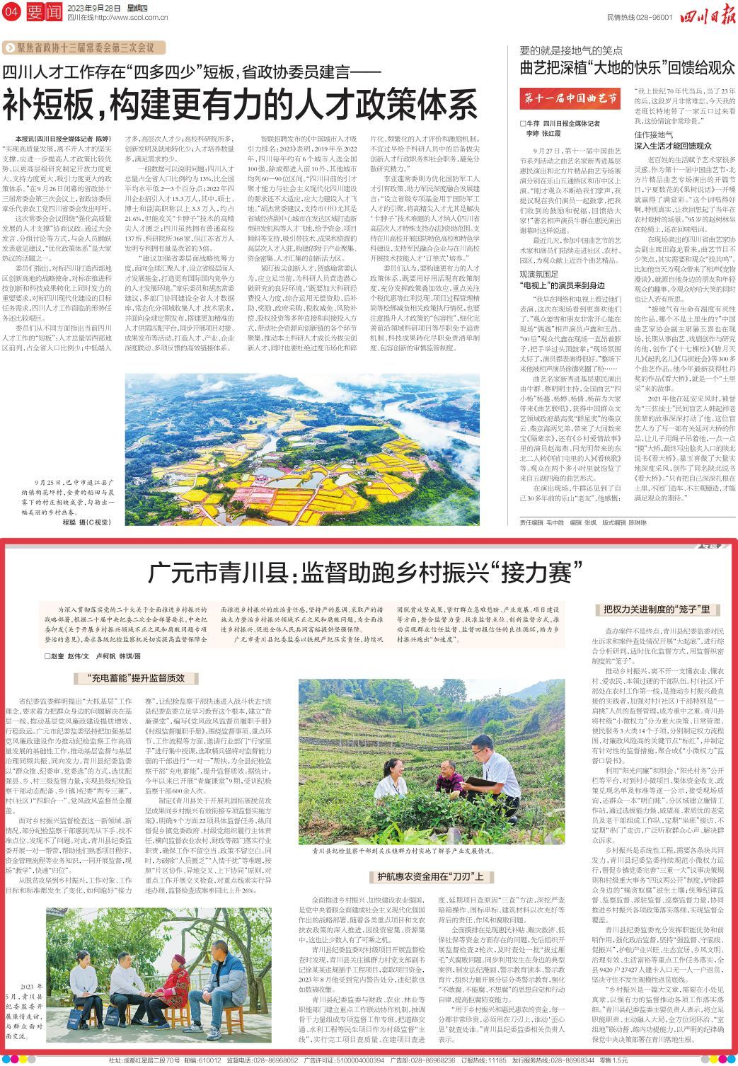 今天,《四川日报》要闻第四版关注,广元市青川县纪委监委以铁规严纪压实责任,持续巩固脱贫攻坚成果,紧盯群众急难愁盼、产业发展、项目建设等方面,整合监督力量、找准监督点位、创新监督方式,推动实现群众信任监督、监督回报信任的良性循环,助力乡村振兴跑出“加速度”。