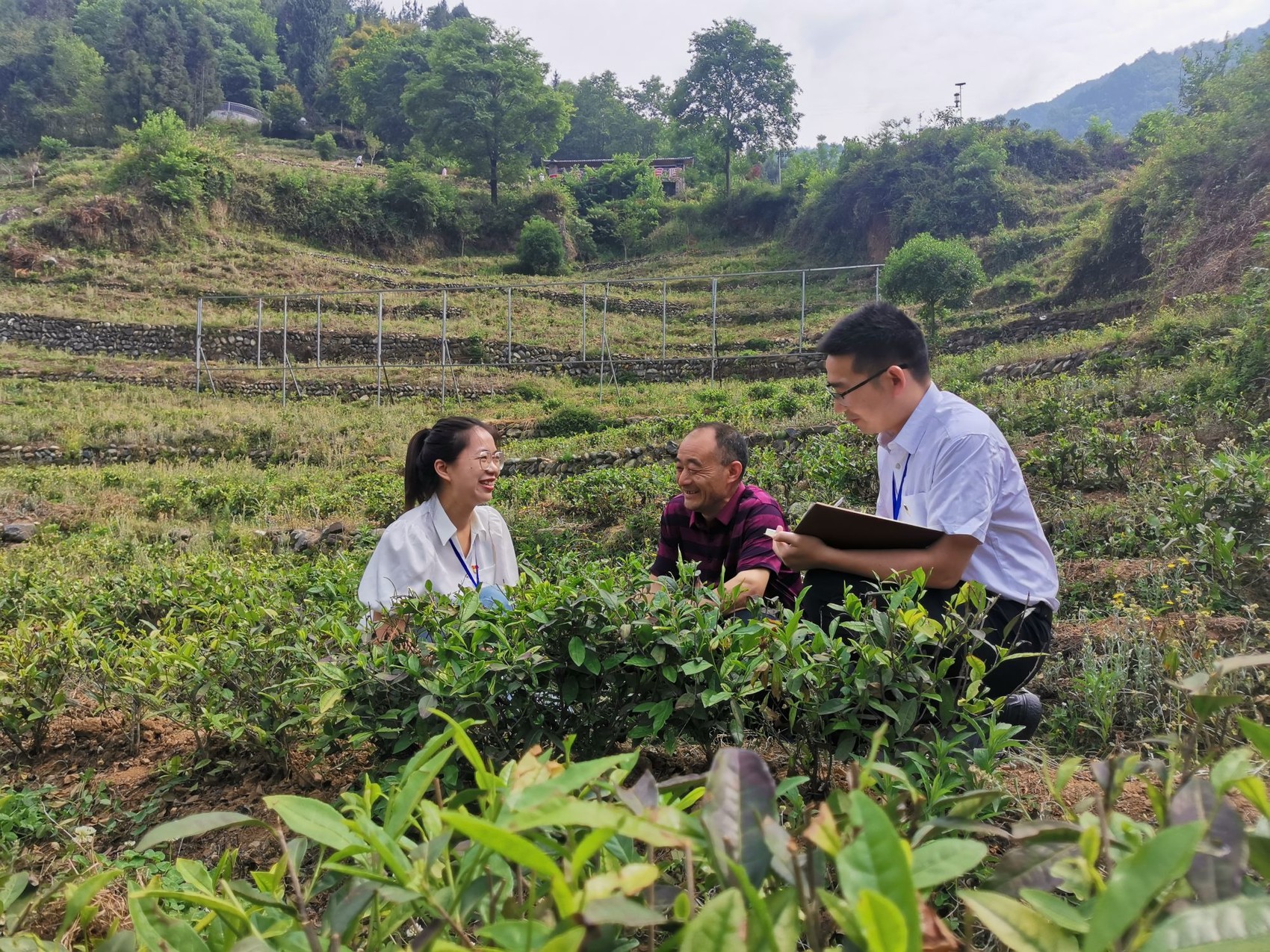 青川县纪检监察干部到关庄镇群力村实地了解茶产业发展情况。