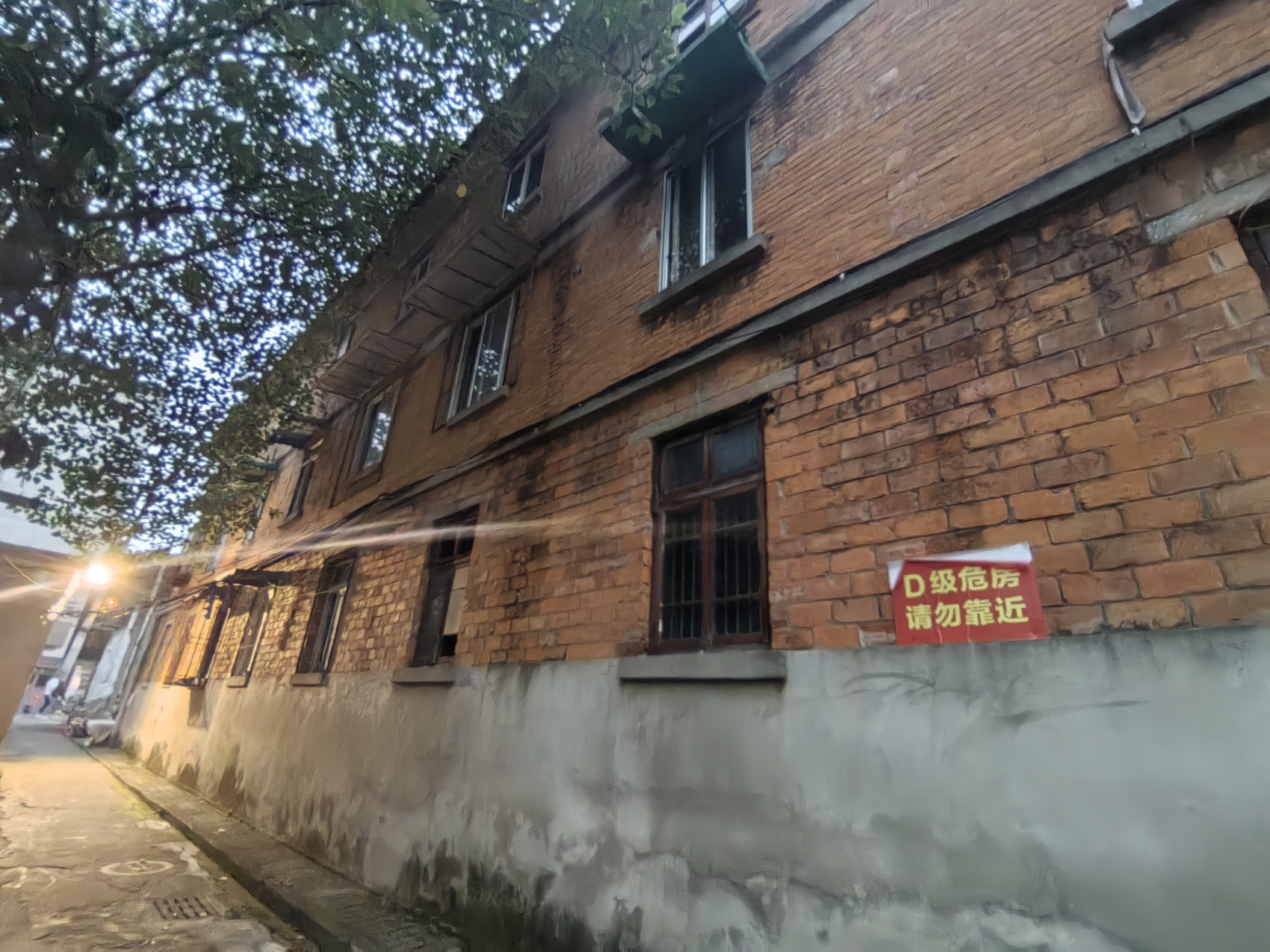 最高危险性的D级危房,立在附近居民进出的唯一通道旁