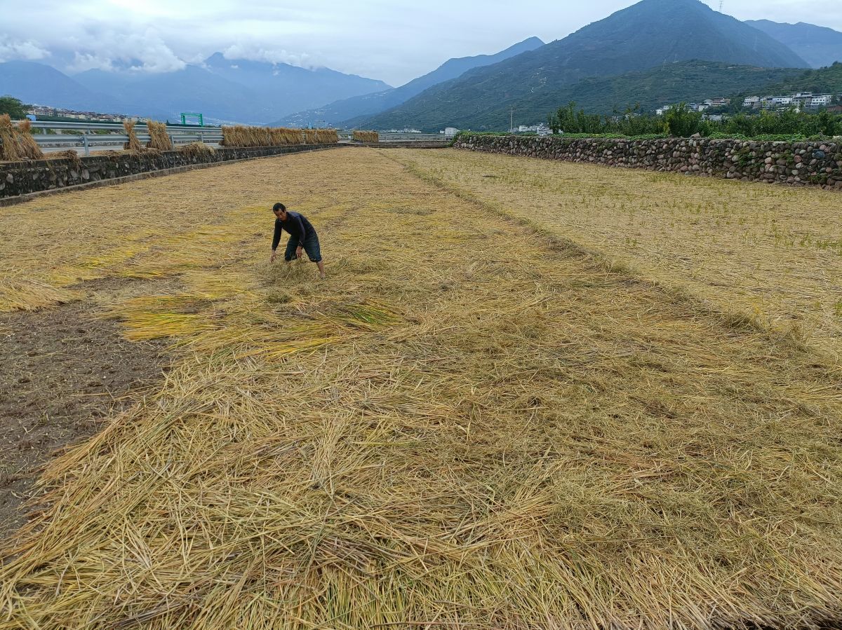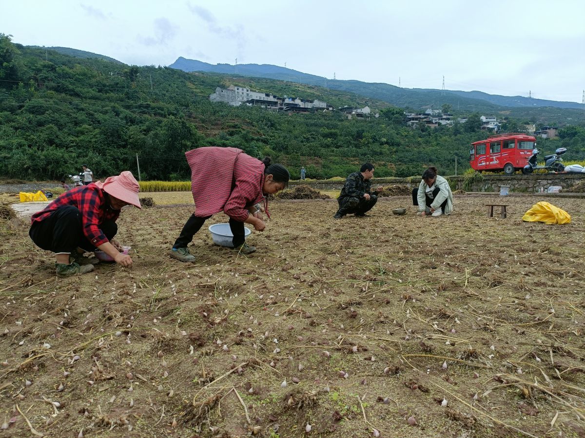 金秋的汉源,稻穗金黄,在汉源县前域镇,农户开始新一轮的忙碌。一颗、两颗、三颗……9月26日,刚吃完午饭,前域镇全合村村民龙锦绣就出现在刚收获完的稻田里,将一颗颗大蒜插进泥土里——前两天她的水稻收割了,露出新鲜的泥土,正好适合栽插大蒜。龙锦绣说,大蒜栽好后,还要覆盖一层稻草当“被子”,既保温保湿、稻草腐烂后又可做肥料。水稻收割后,田边堆放的稻草正好派上了用场。