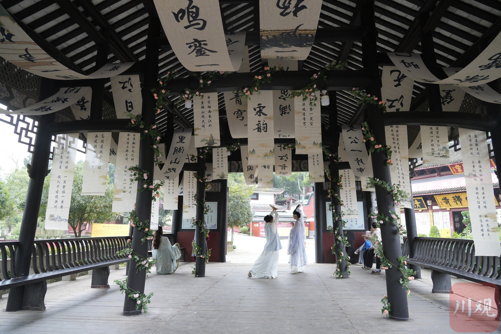 广德景区宋风古韵布景吸引汉服爱好者打卡。