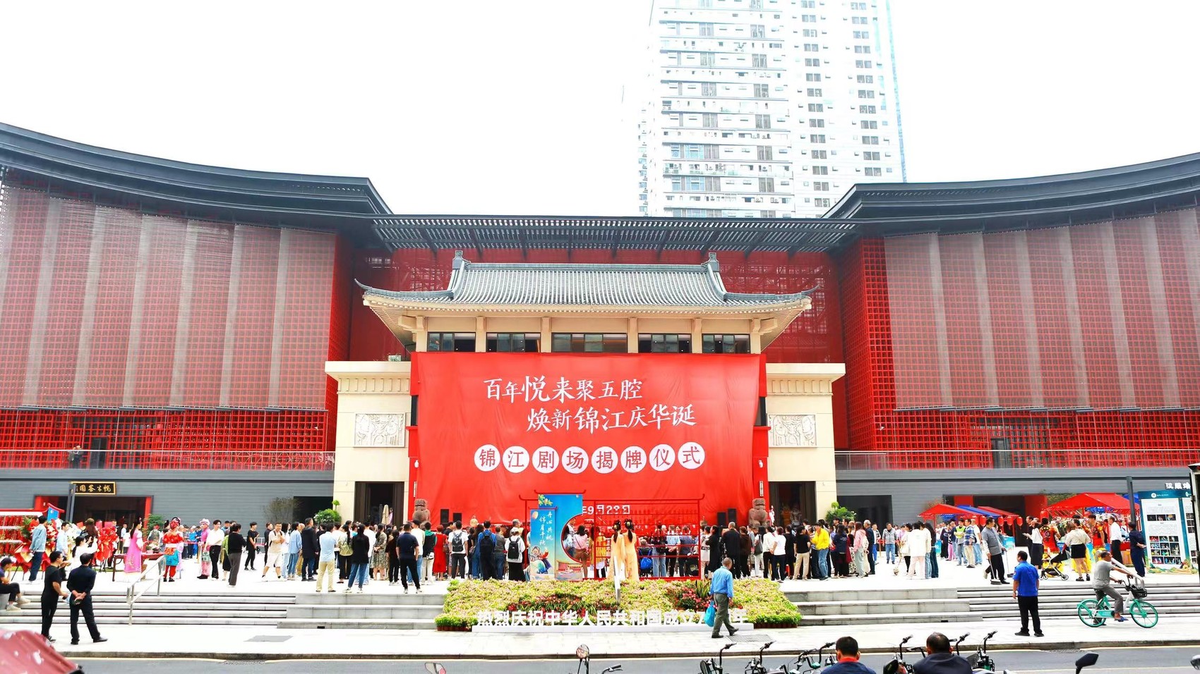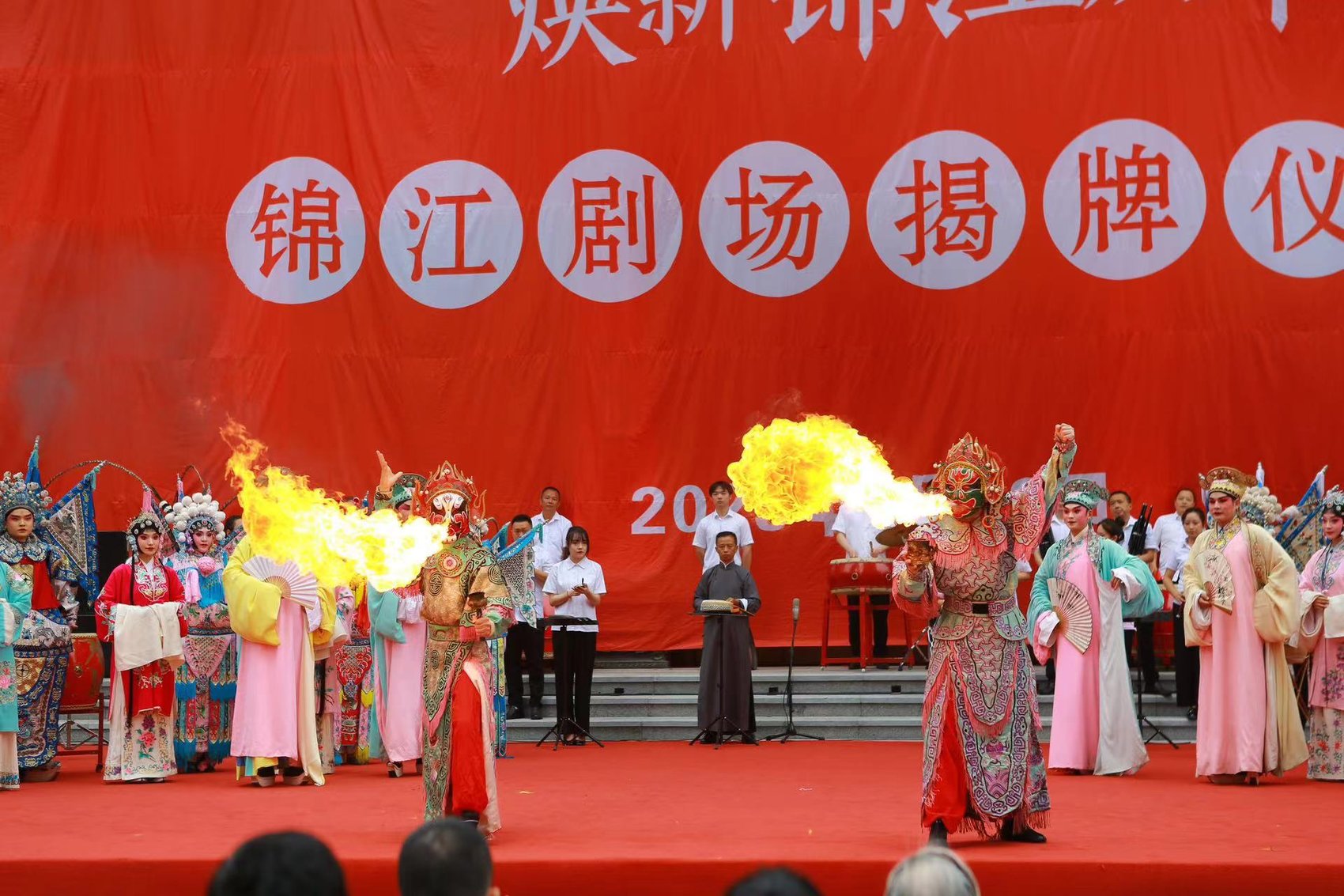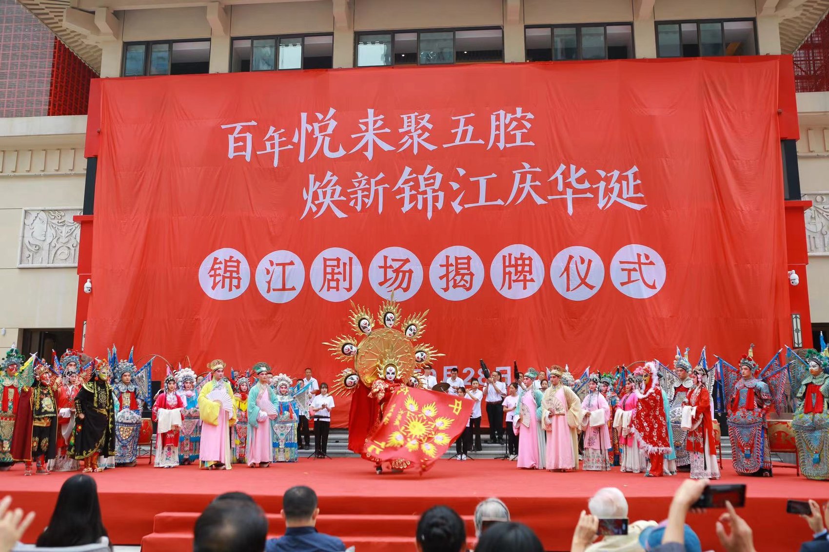 9月28日上午,在精彩热闹的川剧祈福表演《灵官彩台》中,焕新归来的锦江剧场正式揭牌。中秋、国庆双节期间,一系列川剧惠民展演将在川剧艺术中心广场和天府艺术公园・蜀园开展,丰富广大市民游客的假期文化生活。
