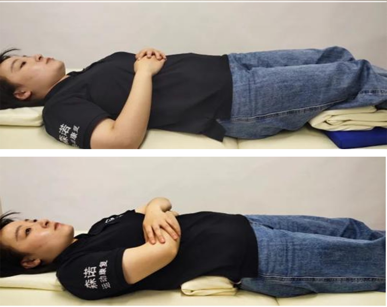 如果这样还是会腰痛,可以尝试在腰部下方垫一个叠起来的毛巾,让脊柱保持一个正常的生理弧度。