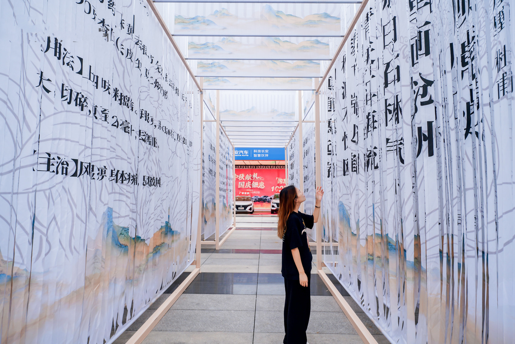 “一面之缘”取中江挂面晾晒的架子外形作为装置骨架,以特殊材质模拟挂面晾晒的垂坠感,打造互动式可进入体验的立体空间,是本次嘉年华活动的一大亮点。