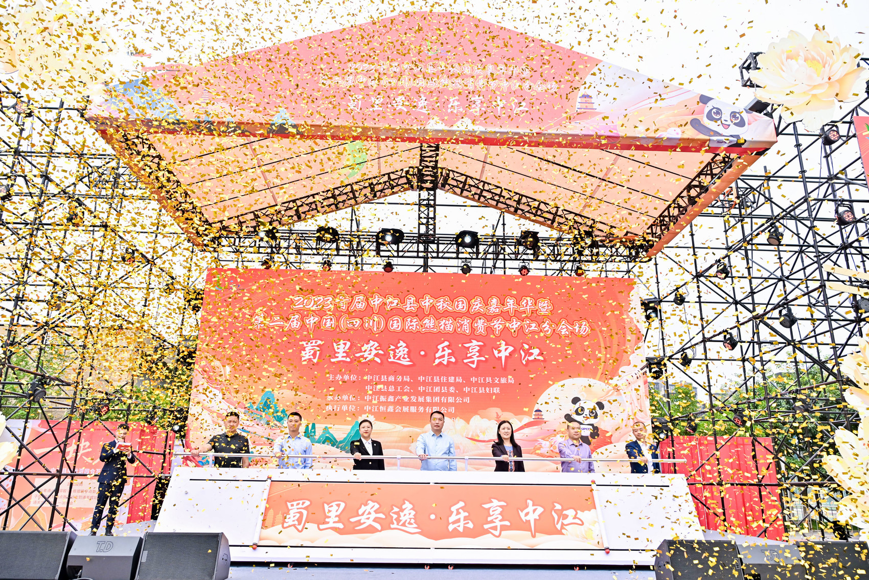 9月28日上午,“蜀里安逸·乐享中江”2023首届中江县中秋国庆嘉年华暨第二届中国(四川)国际熊猫消费节中江分会场活动在县文化广场拉开帷幕。