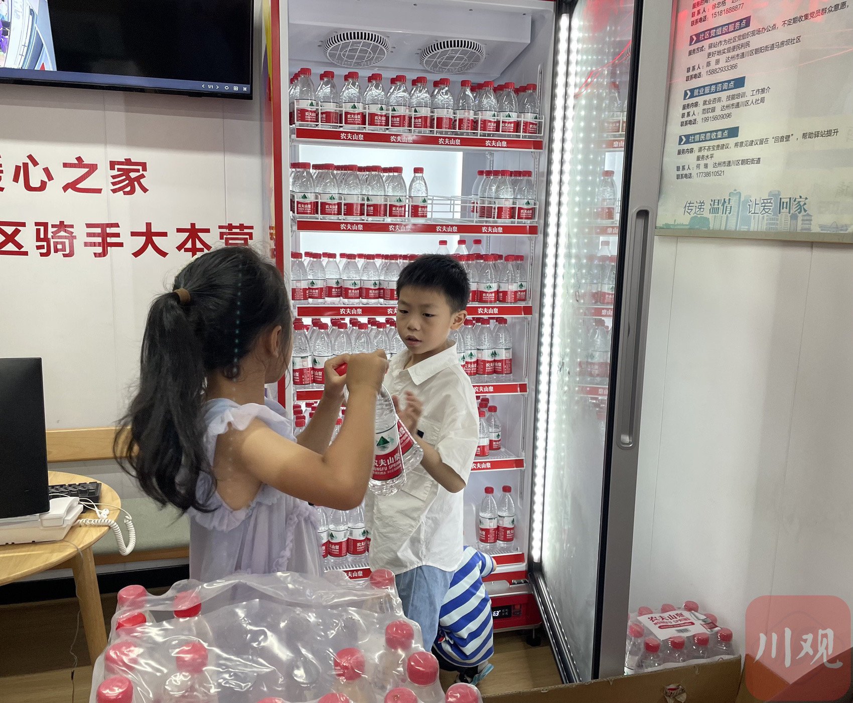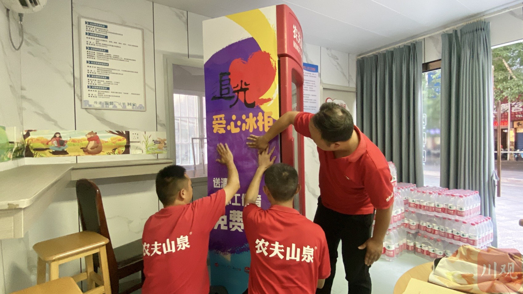 在达州市达川区天益广场“奋进达川·共享驿站”点位,设置于此的“爱心冰柜”成为周边商圈户外工作群体的“加油站”。其所在地社区党委副书记张文书介绍,天益广场片区人口密集、商圈集中,外卖小哥等户外工作者也较为集中,“‘爱心冰柜’在这个夏天给大家带去了清凉,也带去了温暖,期待明年夏天,‘爱心冰柜’还能回家。”