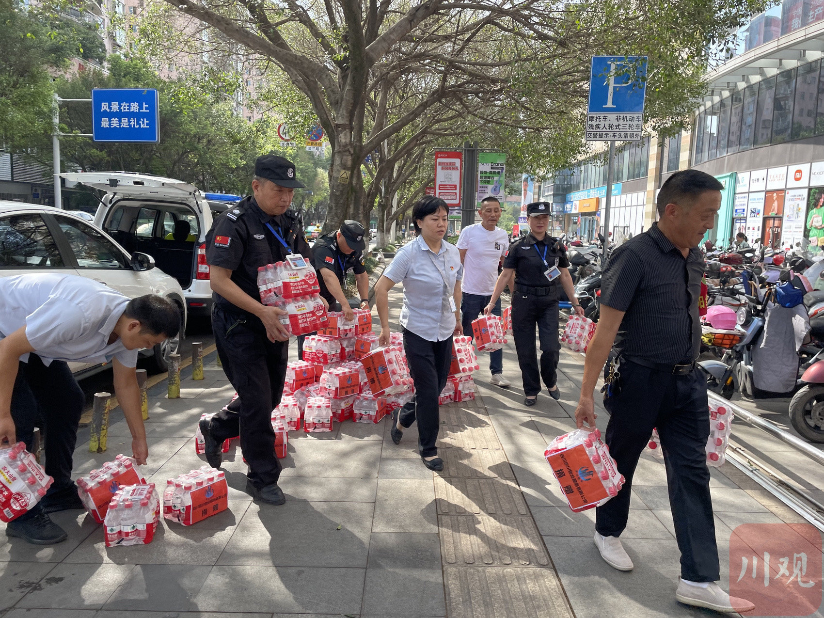 四川京川物业服务有限公司送来100件1200瓶矿泉水。
