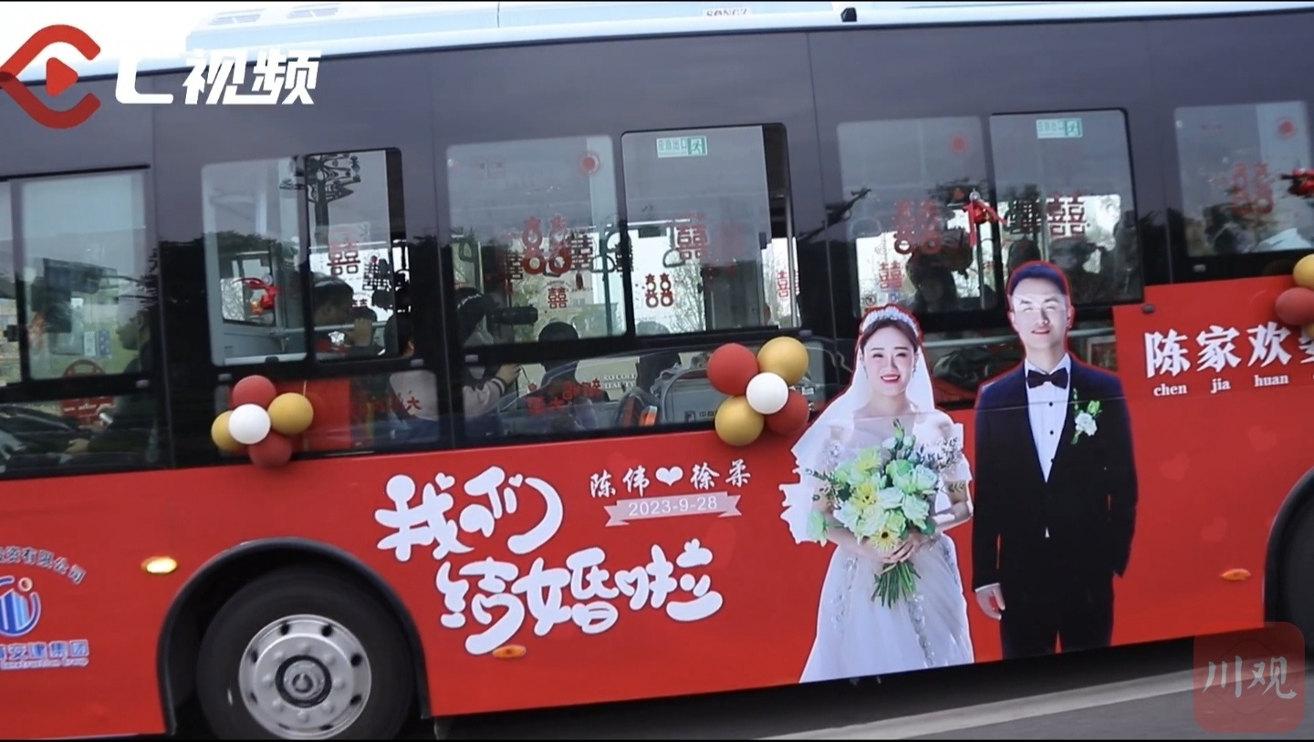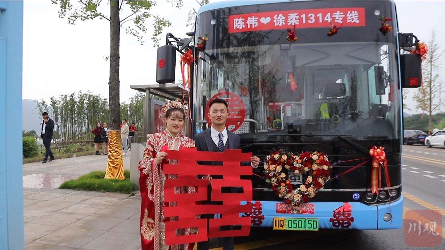 “欢迎乘坐1314路专线公交车,本车开往永结连理、百年好合站……”9月28日上午,宜宾市南溪区一辆喜庆、浪漫的“1314路”专线公交车吸引了众多市民的目光。这是一对小夫妻选择用公交车接亲,个性十足。