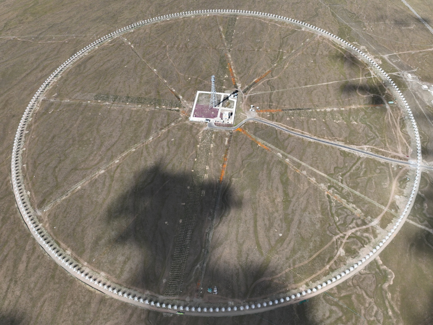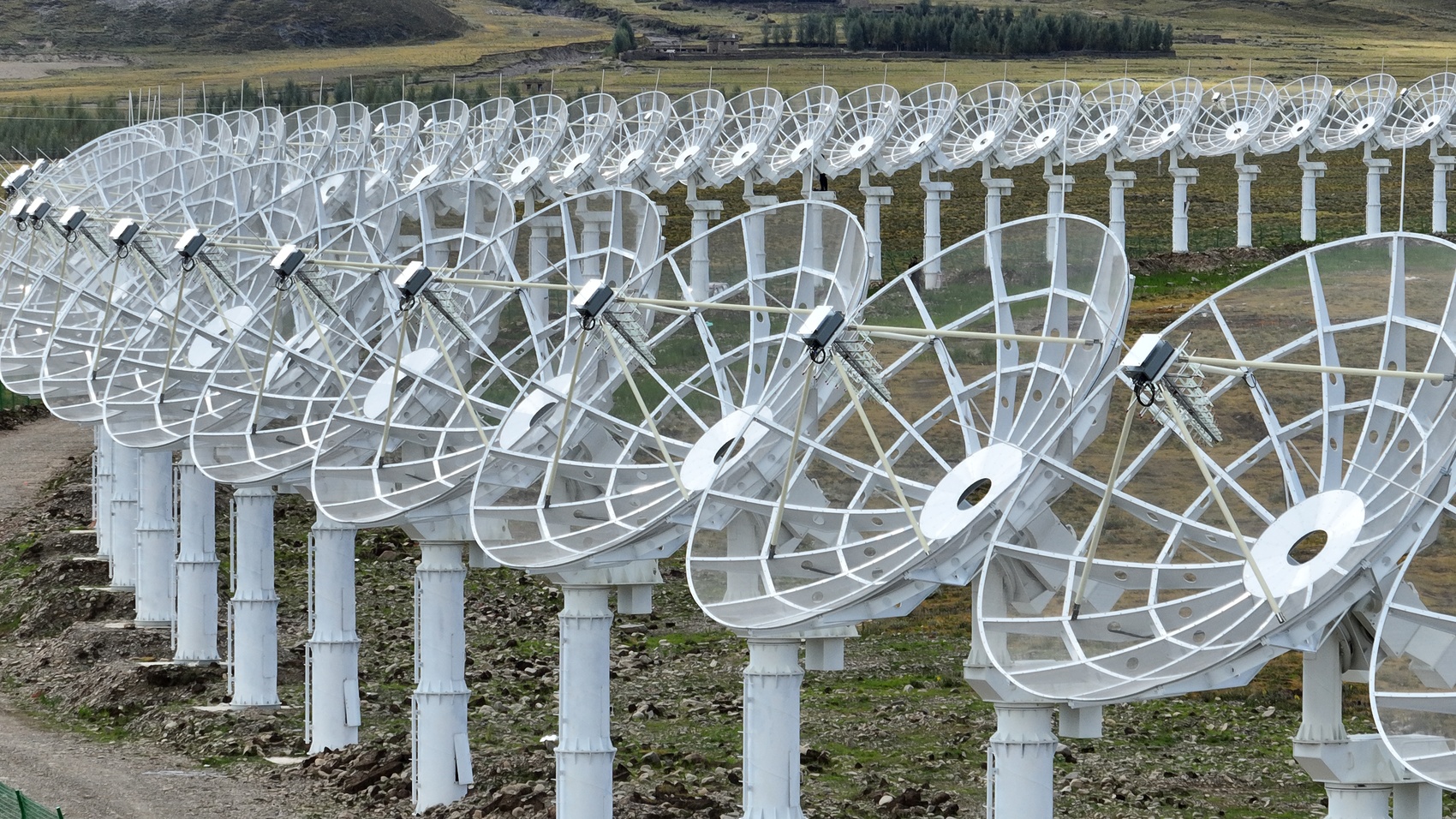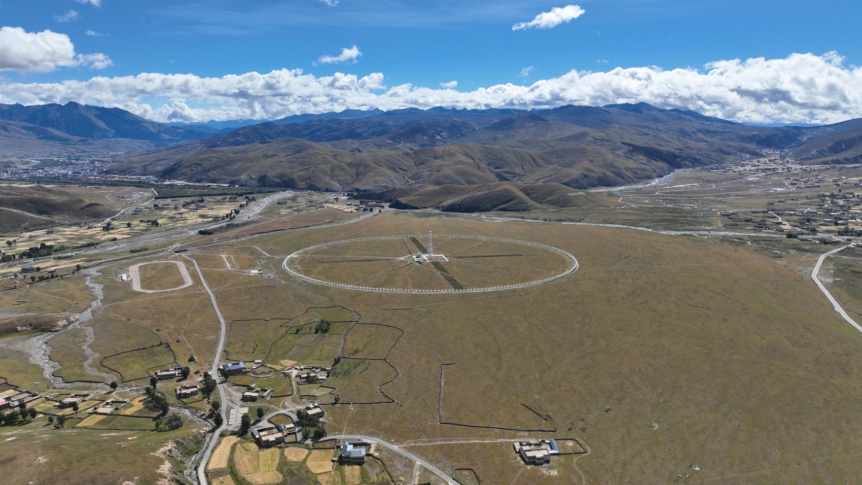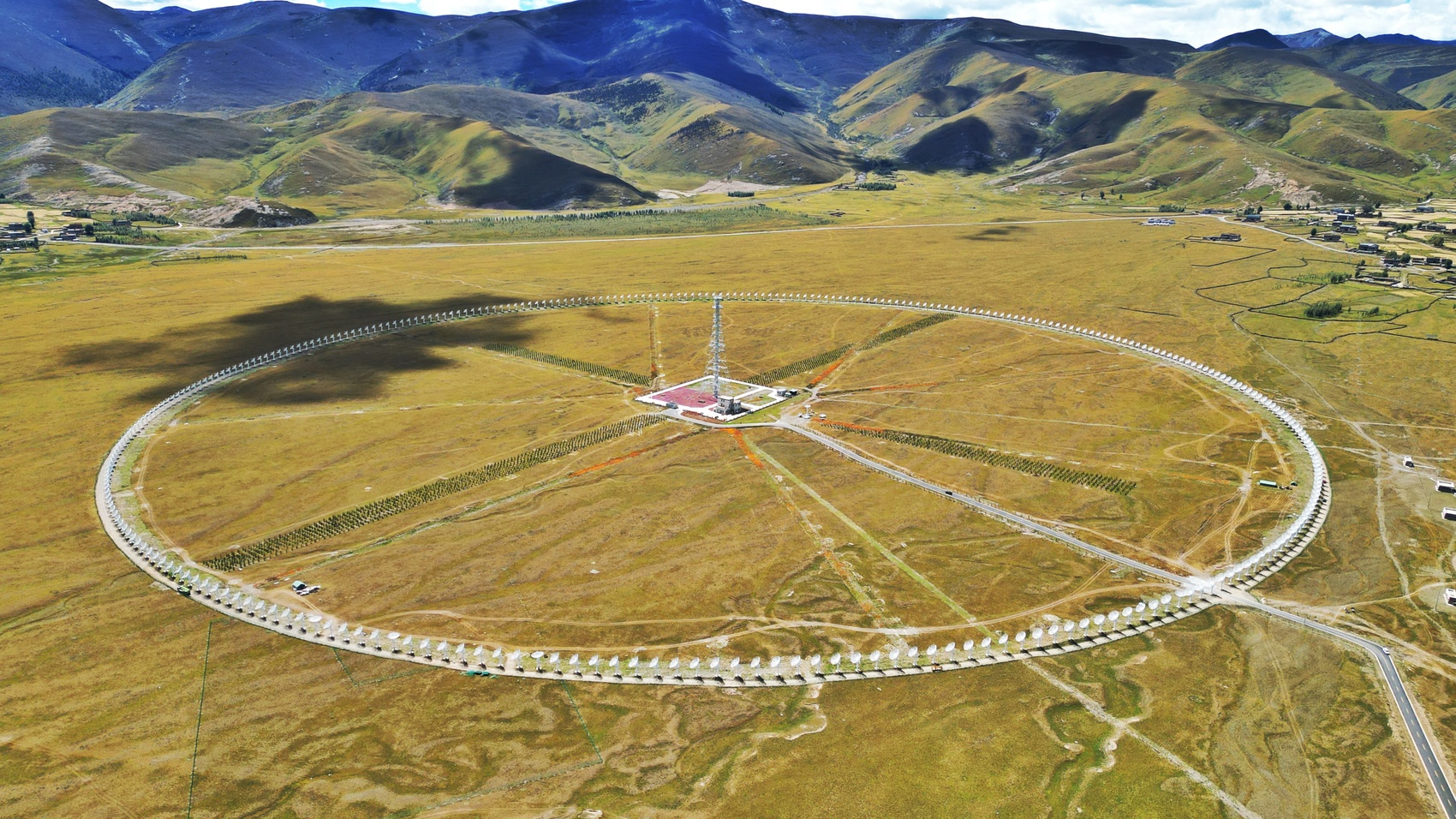 小圆点其实并不“小”,在甘孜州稻城县的群山怀抱间,313台直径6米的天线,均匀地分布在直径1公里的圆环上,面积足足有140个标准足球场大。