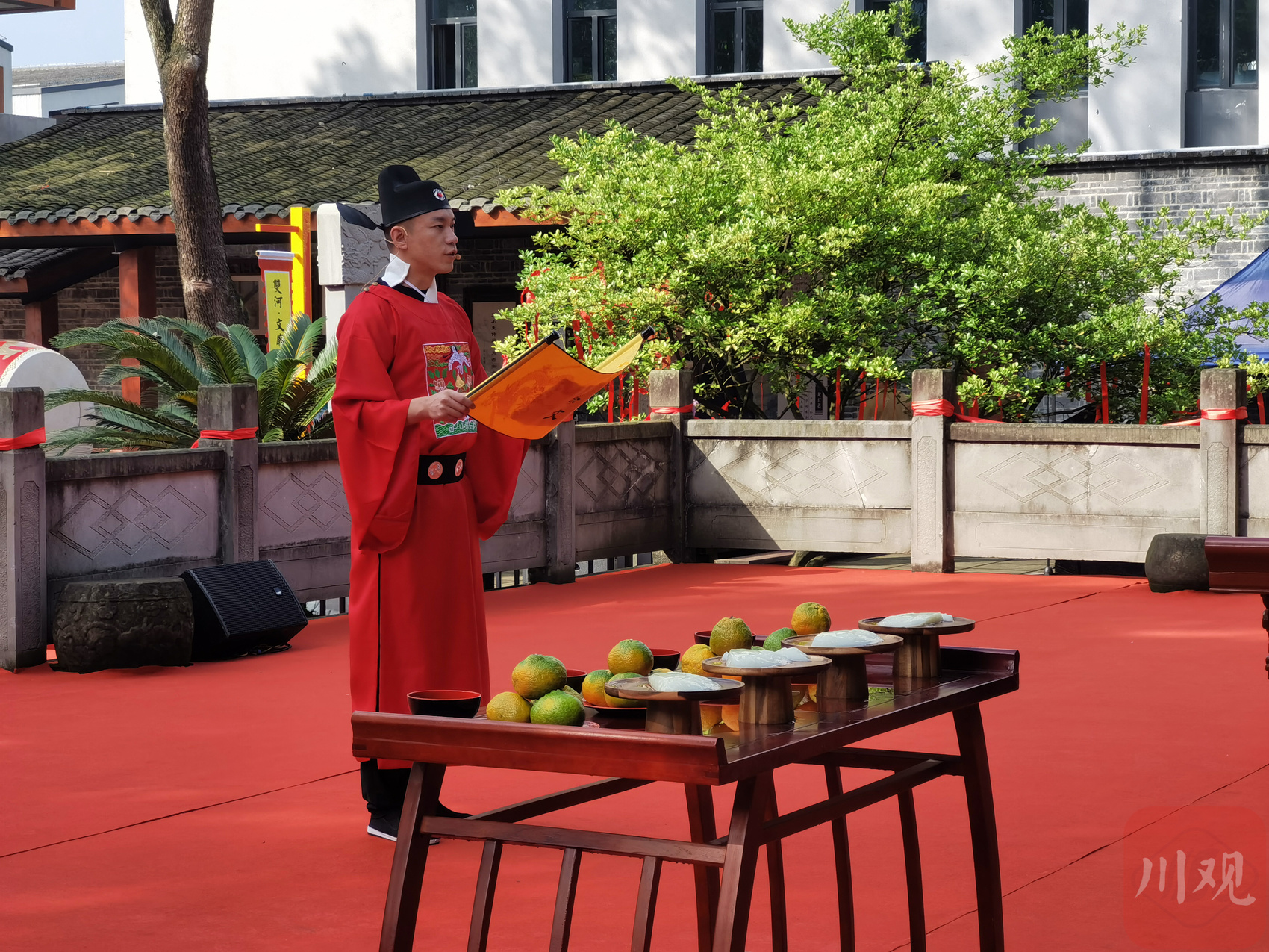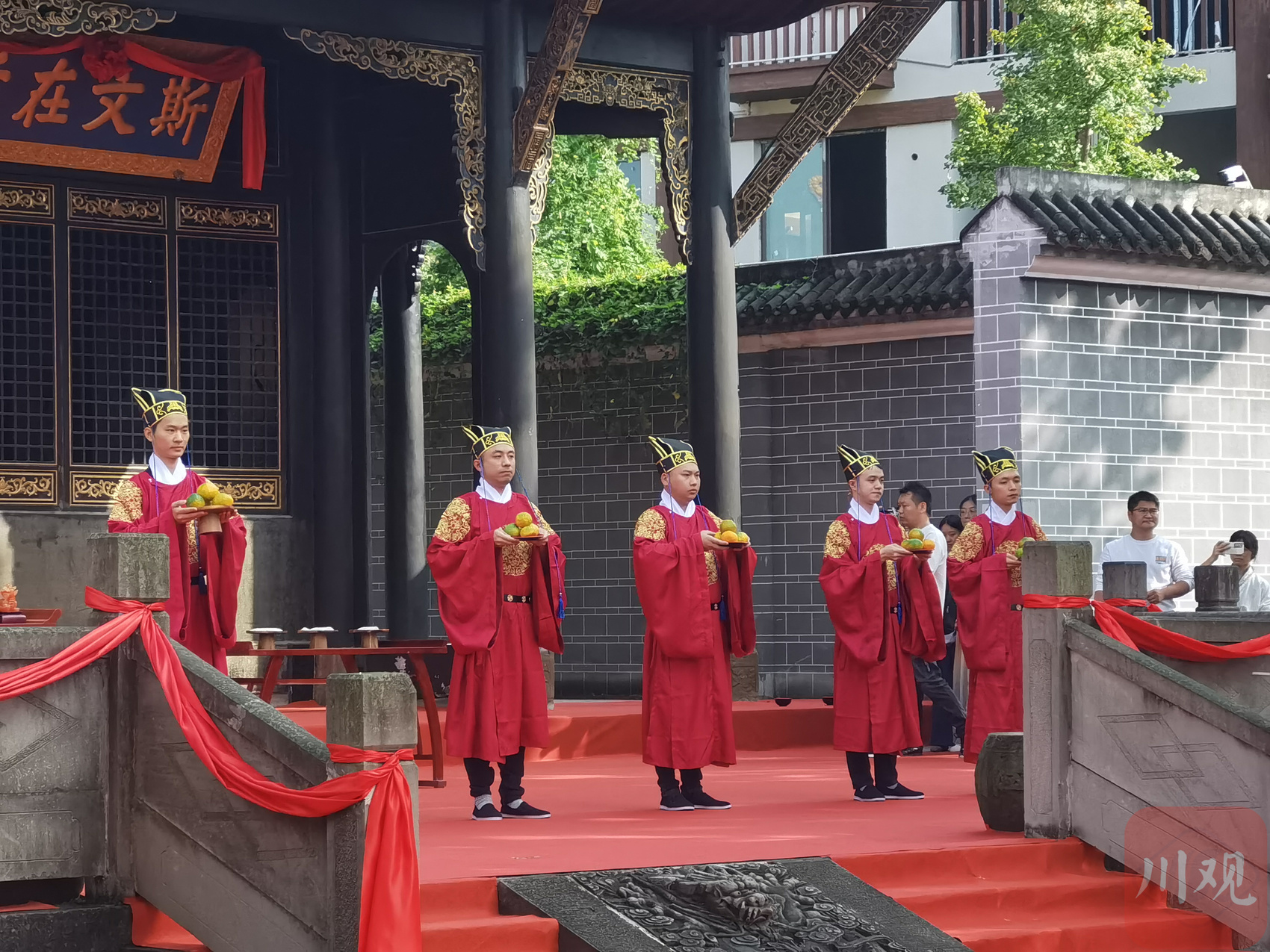 此次活动包括祭孔大典、开笔礼、院试展示、进士回乡四个环节,伴随国风乐曲,数名身穿汉服的表演者登场,曼妙的舞姿让游客们纷纷驻足观赏。