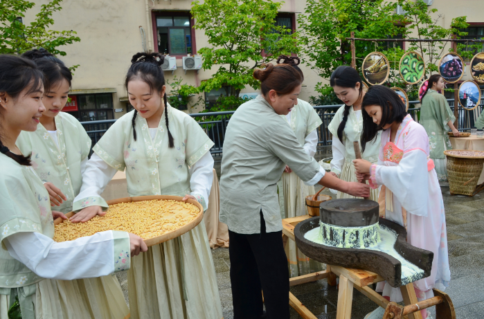 现场,手绘画、磨豆浆、弹古筝吸引了不少游客围观。“这个活动很有意思,通过玩游戏寓教于乐,让典籍里的文化更加可感可触可及。”来自成都的游客胡先生表示。9月29日至10月6日,水磨镇还持续在西羌汇汶创HUI基地展出有关水磨历史文化、风土人情的摄影作品和书画作品,展现水磨人文历史发展魅力。