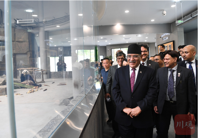 9月29日下午,尼泊尔总理普拉昌达率团前往成都大熊猫繁育研究基地(下称“熊猫基地”)参观考察。